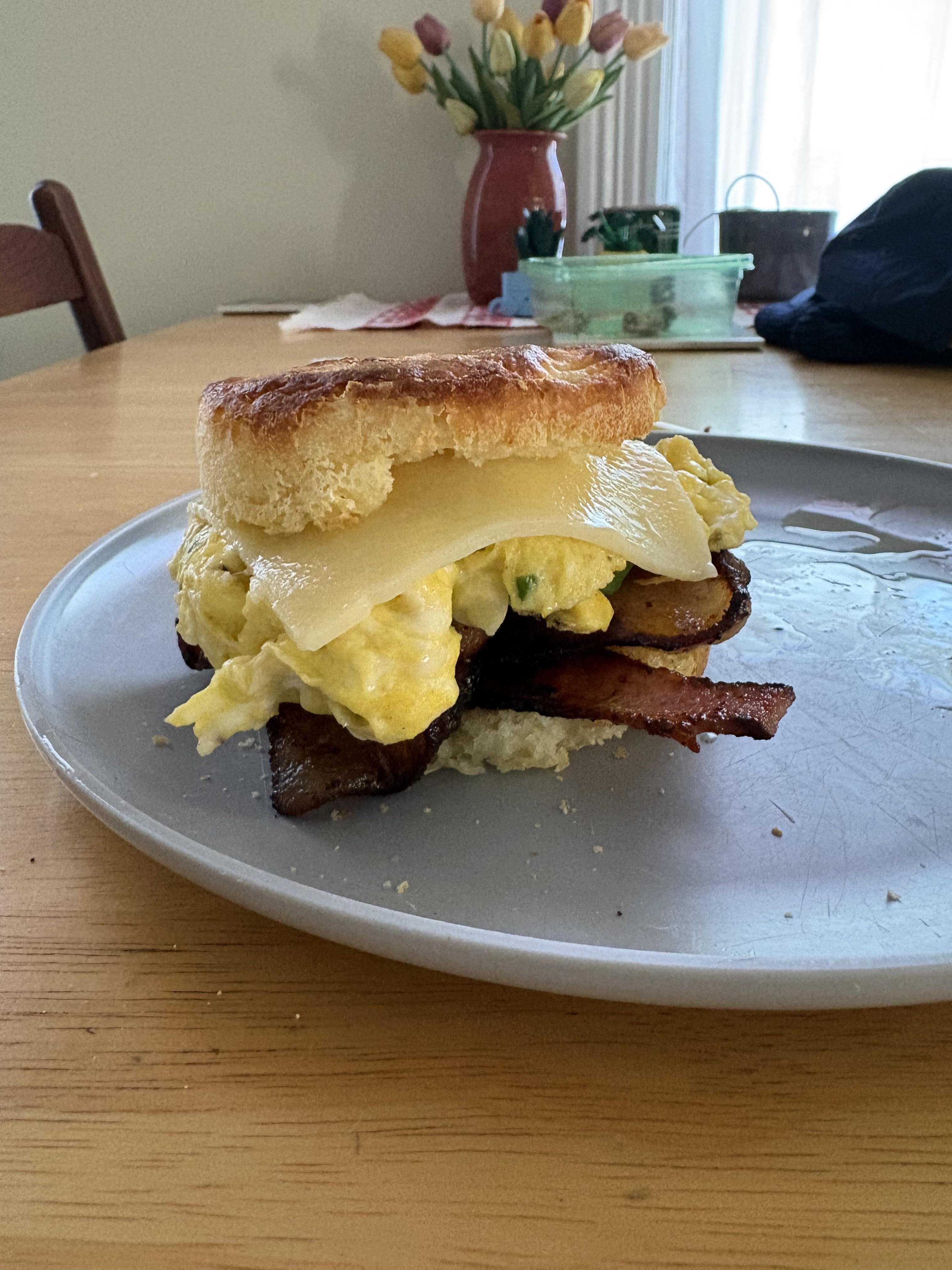 3 pieces of bacon 2 eggs scrambled with green onion 1 piece of Cabot cheddar cheese by SirDudeForSure 3 Comments Sir_Jerhyn 3 months ago That looks soooo good. Fuzzy_Welcome8348 3 months ago Looks amazing! Small-Ad-2708 3 months ago Classic