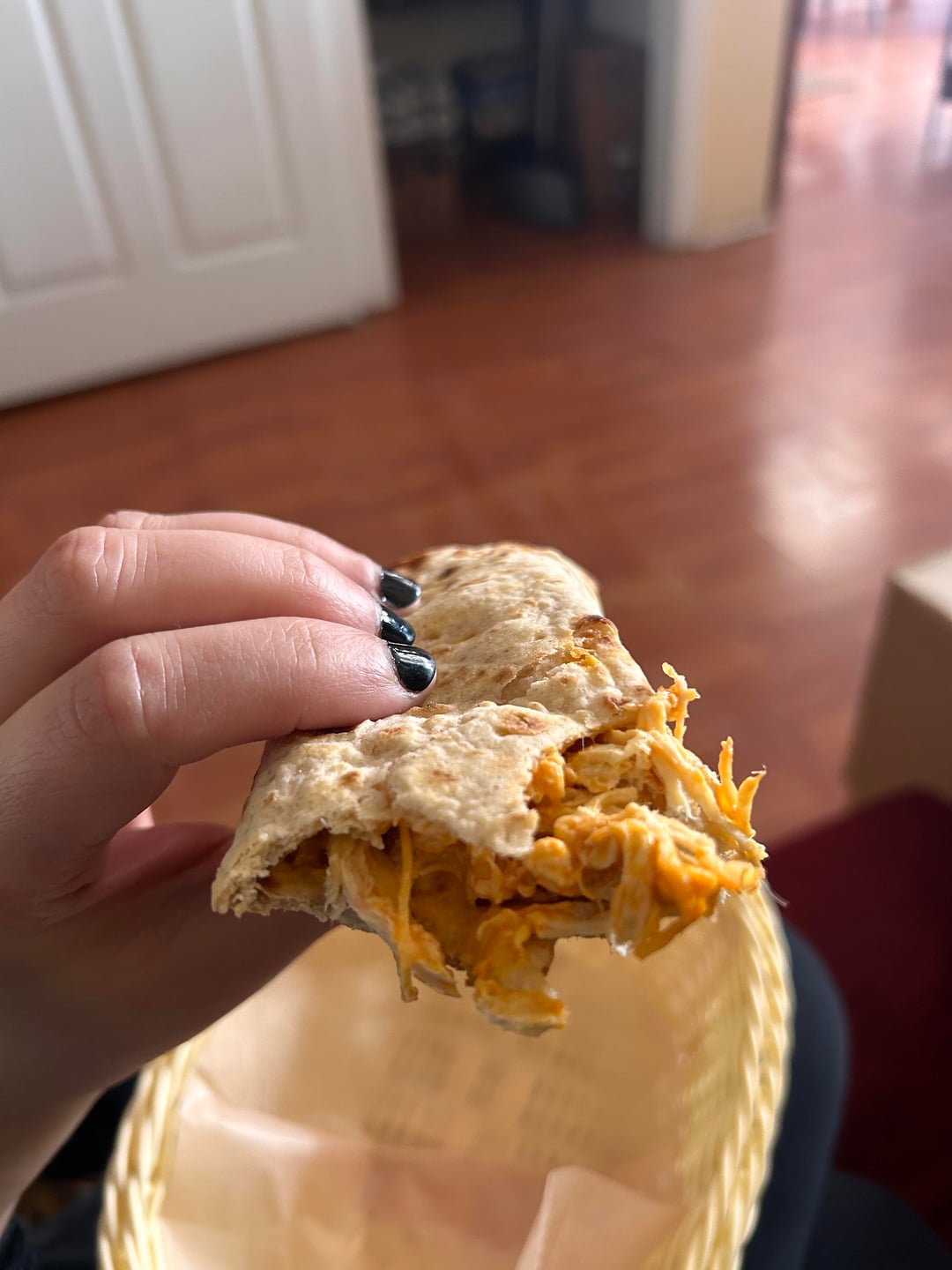 Lunch was my favorite meal prep wrap that I can eat every day! Chicken breast, cream cheese and buffalo sauce spread on half a lavash bread and toasted. Delicious and cheesy and macro friendly!