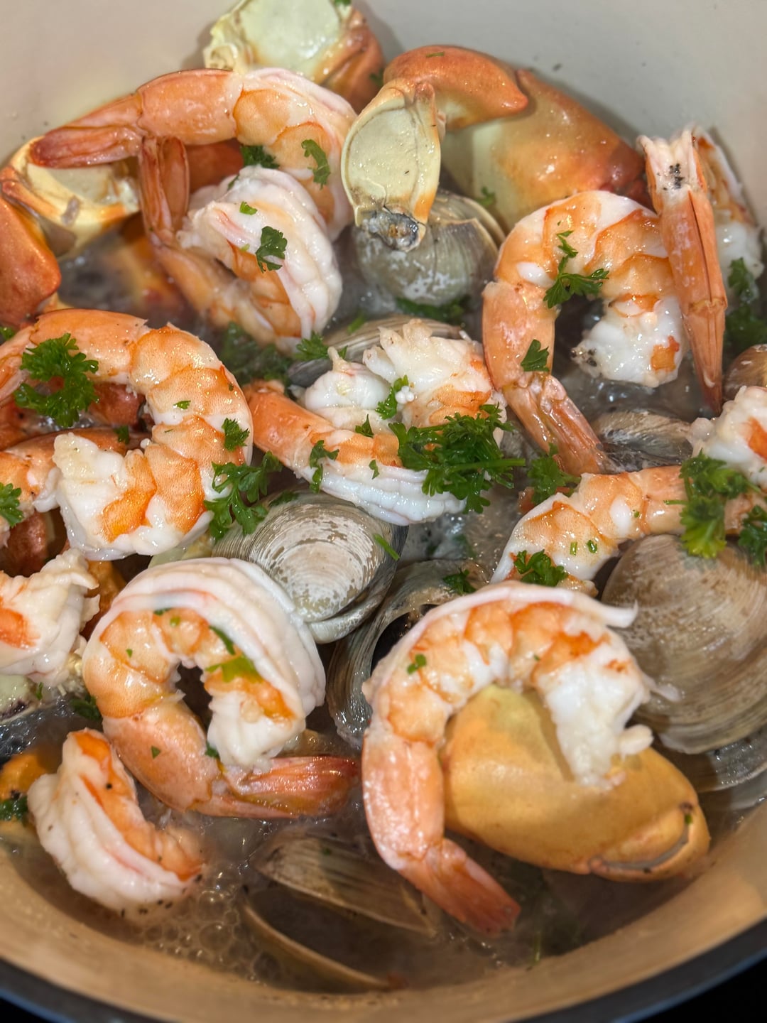 STONE CRAB CLAWS, JUMBO SHRIMP AND CLAMS TEAMED IN BUTTER, GARLIC, SHALLOT & WHITE WINE.by WHITEMERLOT69 11 Comments After-Rain-2643 2 months ago 😩 wwJones 2 months ago THAT LOOKS GREAT Conscious-Grade-2382 2 months ago Wheres my invite? This looks amazing omg ComplexEquipment3712 2 months ago You can TEAMED me anytime!!! Zoranealsequence 2 months ago Saved and screen shouted because im making this sometime this week Skaifyre 2 months ago You know we could be friends but noooooo, you’re out there eating that without me lmao No_Sand_9290 2 months ago How did you prepare the stone crab claws ?? Everything looks great ENVLogic 2 months ago How do I make this? Hot-Map-9119 2 months ago Yuuuuuummmmm!!!! 🤤 😋 🤤 😋 🤤 😋 d00mzzd4y 2 months ago LOOKS AWESOME. WHY ARE WE YELLING? Character-Badger734 1 month ago I’m trying this, I always double the garlic butter