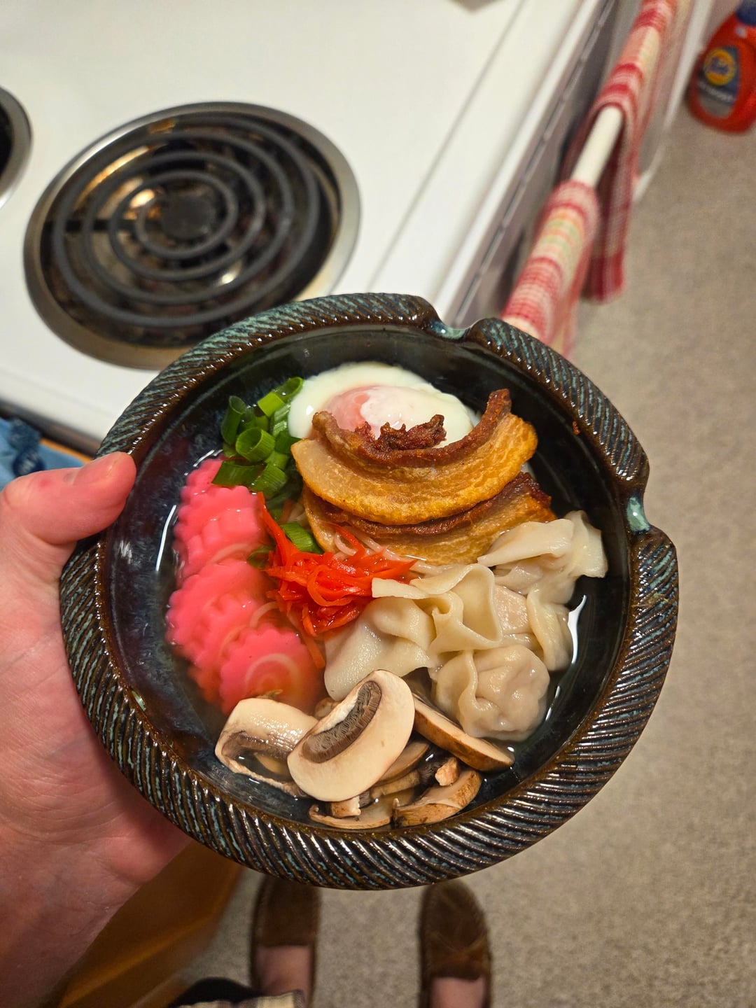 Toppings were onsen egg, naruto, pork belly, beni shoga, mushroom, scallion, and wonton dumplingsby browns5101 2 Comments Icy-Brother5834 1 month ago It doesn’t look like just a simple shio ramen. It looks delicious. senex_puerilis 1 month ago Looks delicious but… is it served in an ashtray?