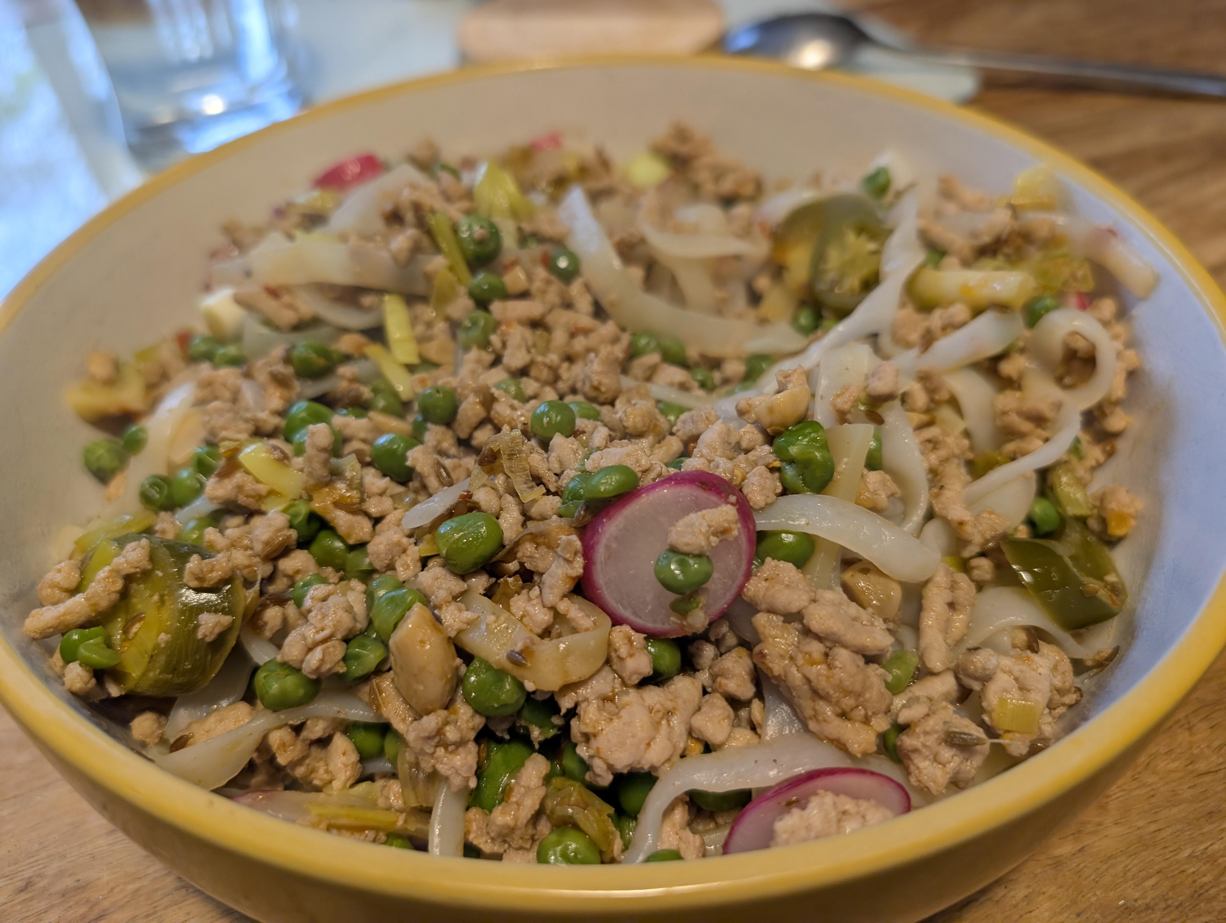 Turkey mince and a bit of veg and I've got a huge bowl of food. Oh and hot sauce. Lots of hot sauce. by Logical_Strain_6165 Dining and Cooking