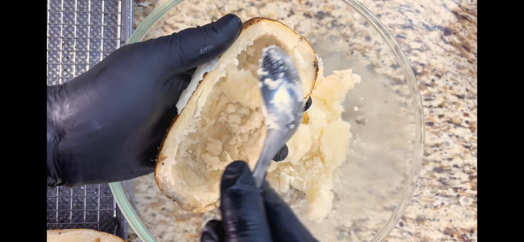 First smoke just to soften and add flavor, then scoop, mix with butter/cheese, refill the skins and send them back on the smoker. The second round made a huge difference,crisp edges, creamy inside, way more depth than regular smoked potatoes.