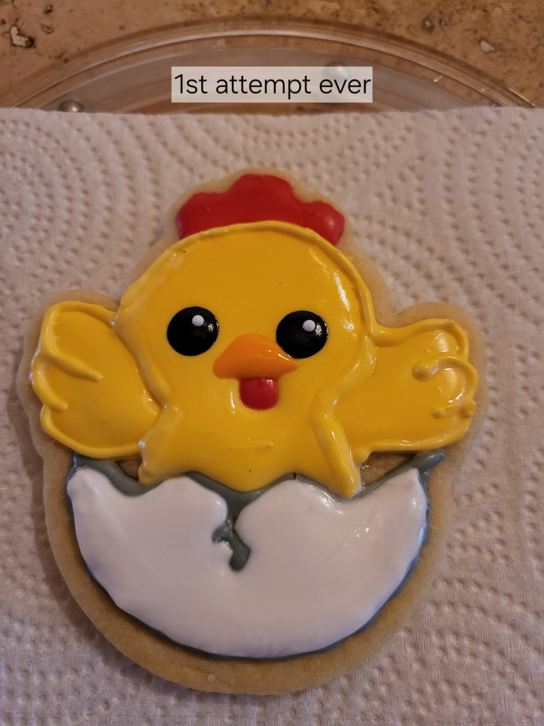 This is my very first time decorating cookies, and I'm struggling, of course. 🤦♀️ Cookies were great. No problem there. It's the dang royal icing!