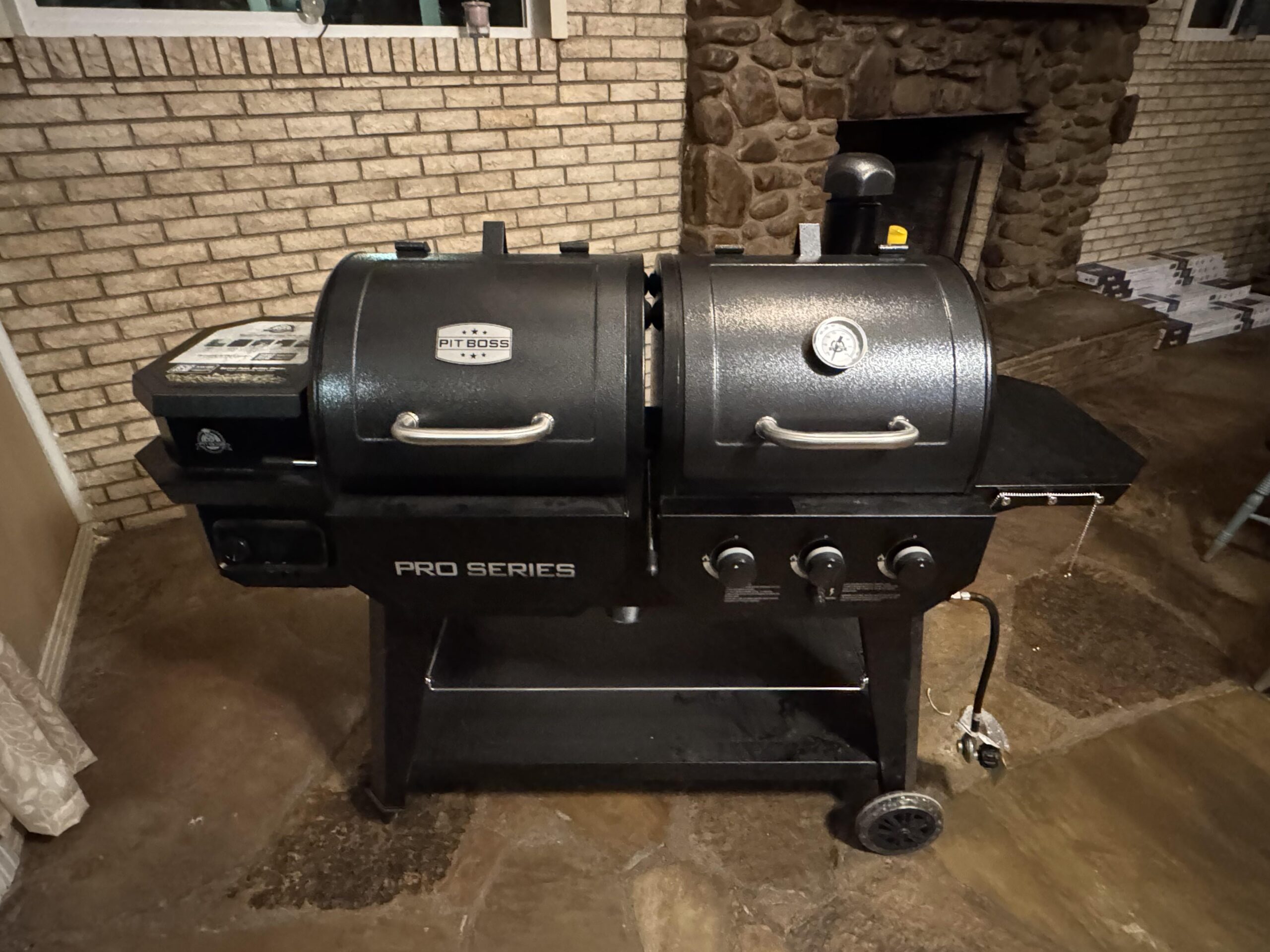 I had that exact model when I got my first pellet grill. Then I realized how easy and better grilling on the pellet side is, especially with the sear plate. I wound up giving it to my uncle after about 6 months and bought the 1600 elite. No regrets. Enjoy. As far as pellet brand, bear mountain or Costco brand. I find trager leave more ash. Plus the other 2 can usually be had for a lot cheaper, 14-20$ for 40lbs vs 20$ for 20lbs of trager.