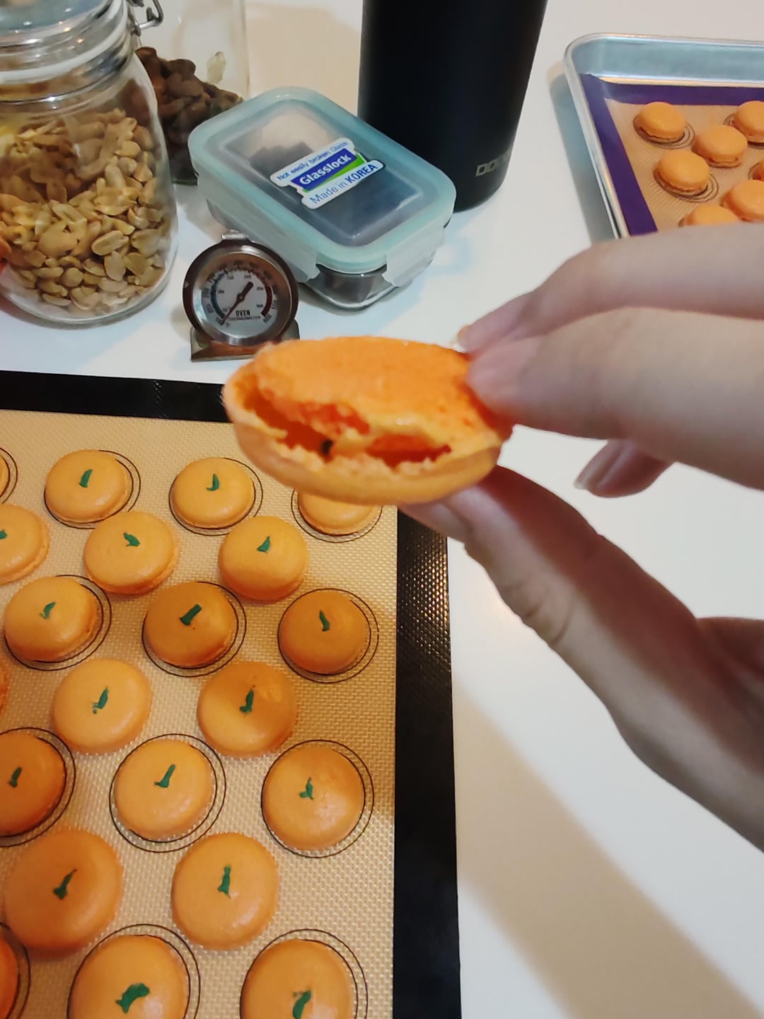 The first picture, my macaron feet are curving inwardsSecond picture, the feet are still soft and the insides are hollow Third picture, the macarons have solid feet but it looks like it's levitating.by BackgroundEmu2383 Dining and Cooking