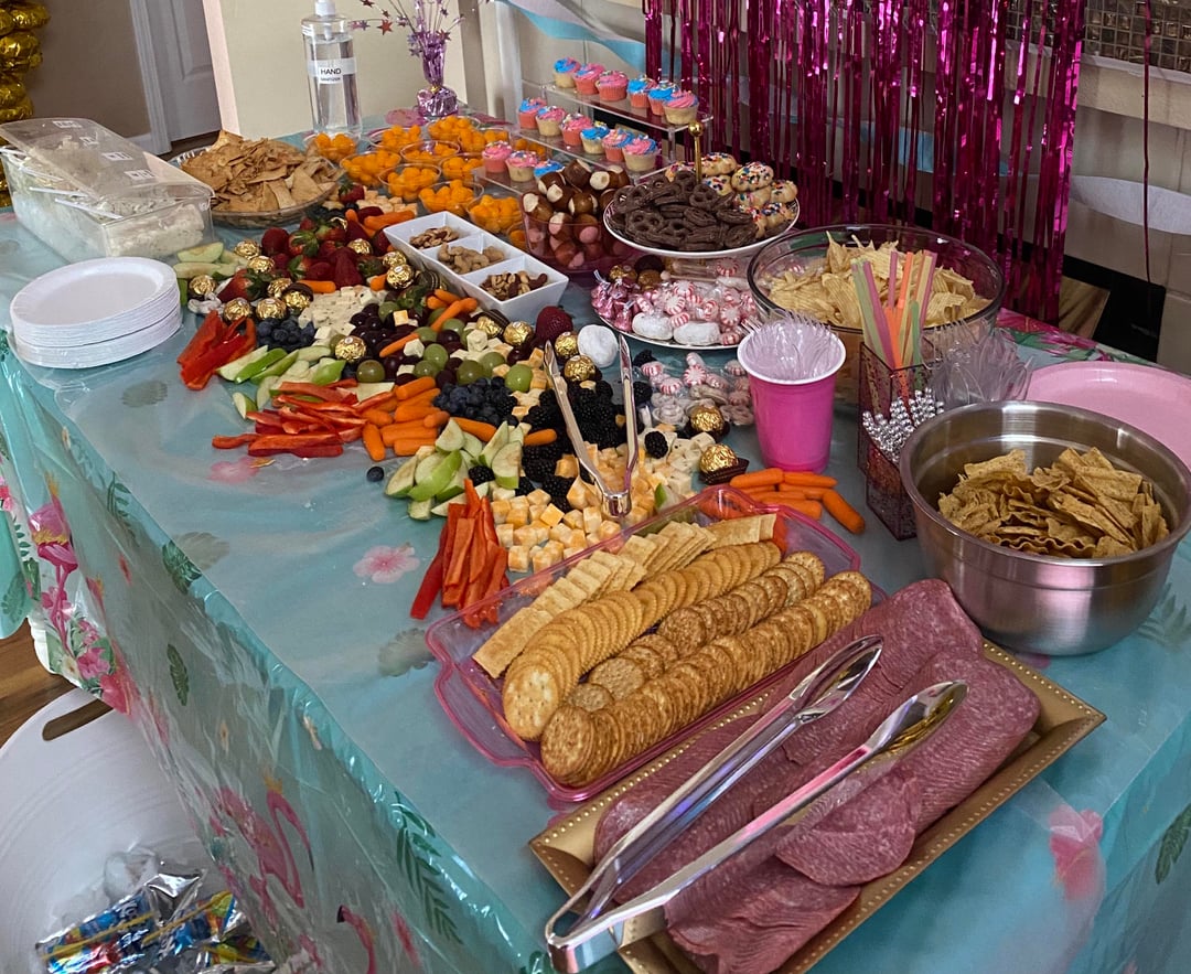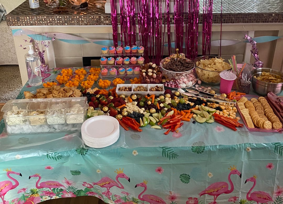 Way to go, mom! (I’m making an assumption based on your username, if I got it wrong I’m sorry!) Talk about a brilliant solution to keeping dips chilled and covered while still easily accessible! I definitely wouldn’t have guessed this was your first grazing table. And the hand sanitizer is a smart touch too, as was having some pre-plated individual snacks (the small bowls towards the back). I hope everyone had a great time, especially your daughter!