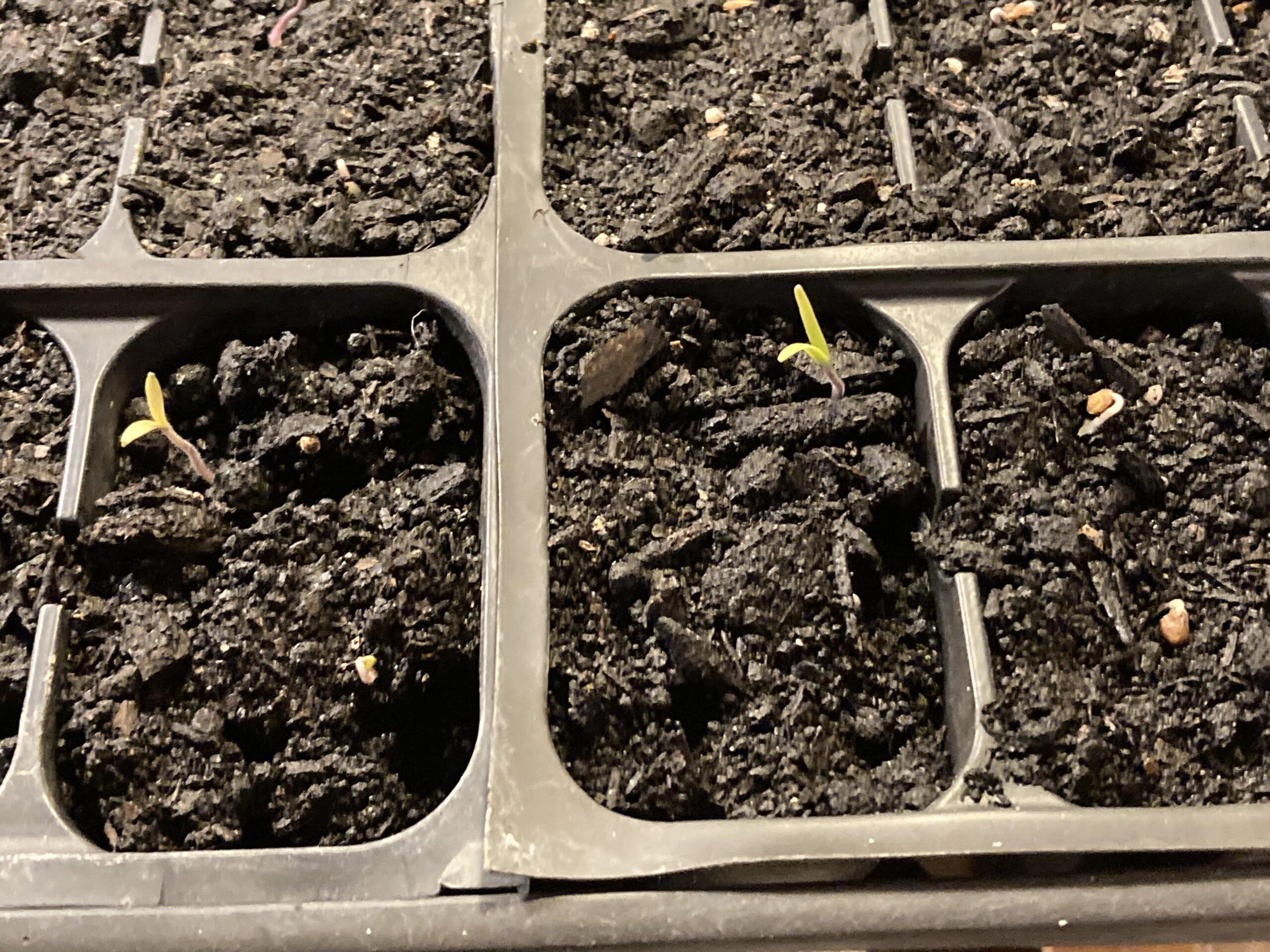 The variety is Marglobe. Those were planted on Saturday 24 Jan, and in a tray. The tray has been rotating between outside direct sunlight, and inside at night to avoid [sub-freezing temps](https://i.redd.it/kmszdyqqp2hg1.png) here in north Florida. Those represent ~9 days since planting. The growing medium in the tray is a commercial potting mix made by Baccto. The gentleman down at the feedstore says he grows his tomatoes by planting them along the field fence, and tying them to the fence as they grow. That is how I’m going to try it.