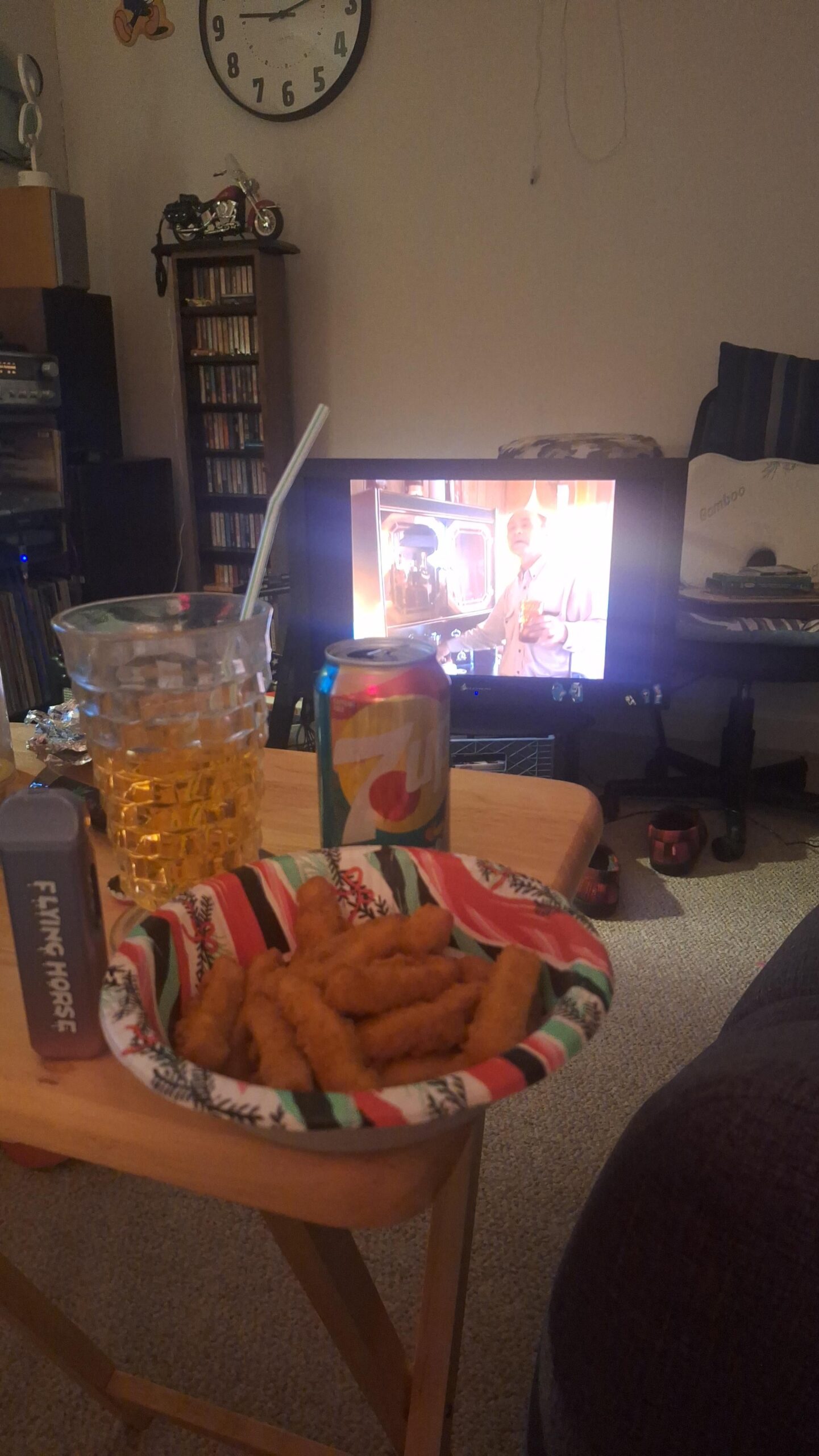 I been sick of being a lurker here, but me and the guy I usually drink with got takeout last night, so I figured this is a consolidation of sorts. Made me some chicken to go with trailer park boys. The drink, Burnett's vodka and tropical 7-up. My usual drink is Jameson whiskey, but the tarrifs got that messed up, so I'll buy American for a while. Burnett's ain't bad, and it's less than 30 a handle. What y'all up to tonight?