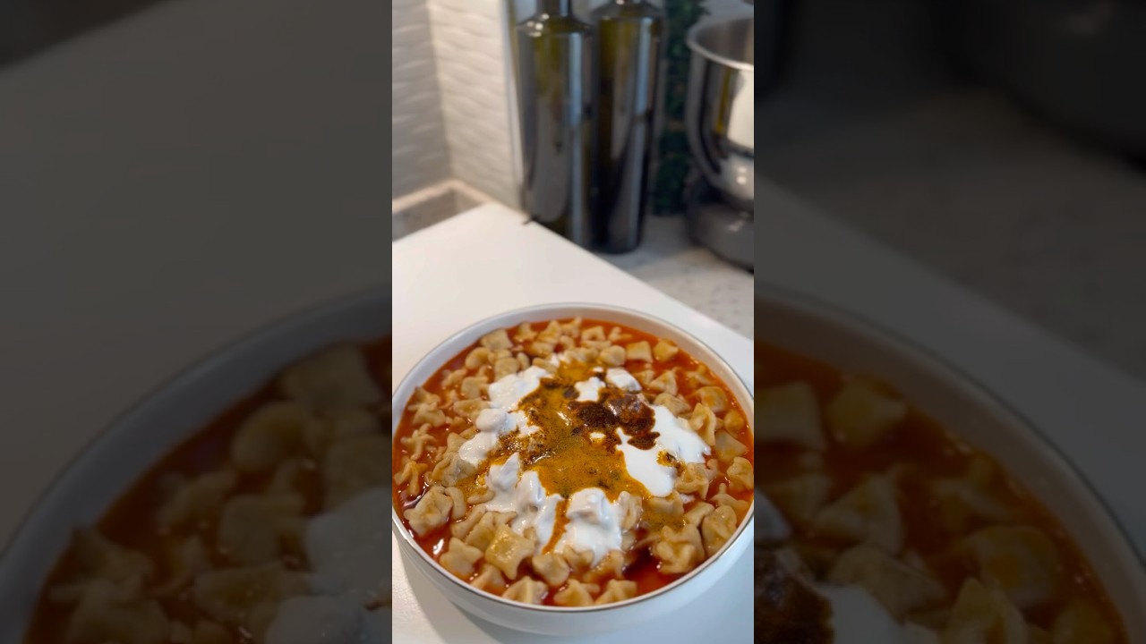 Serve the manti topped with garlic yogurt, then drizzle the tomato butter sauce over it. Finish with your favorite spices sautéed in butter if desired.