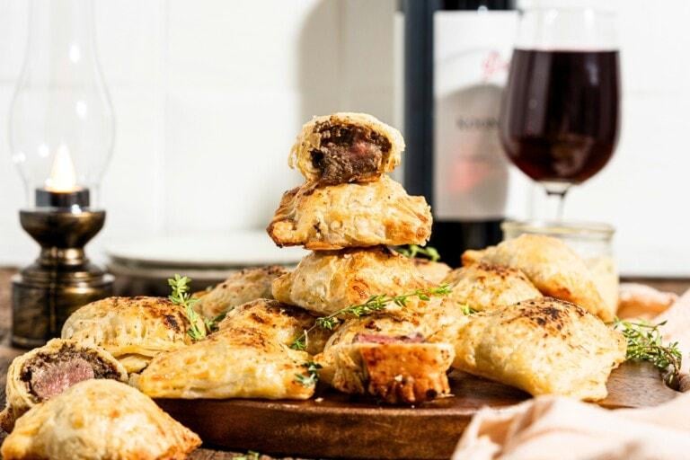 These [**Beef Wellington Bites**](https://www.kimschob.com/beef-wellington-bites/) are a show-stopping appetizer that’s where each bite features tender beef tenderloin wrapped in golden puff pastry with savory mushroom paste and creamy Dijon sauce, making them perfect for parties!