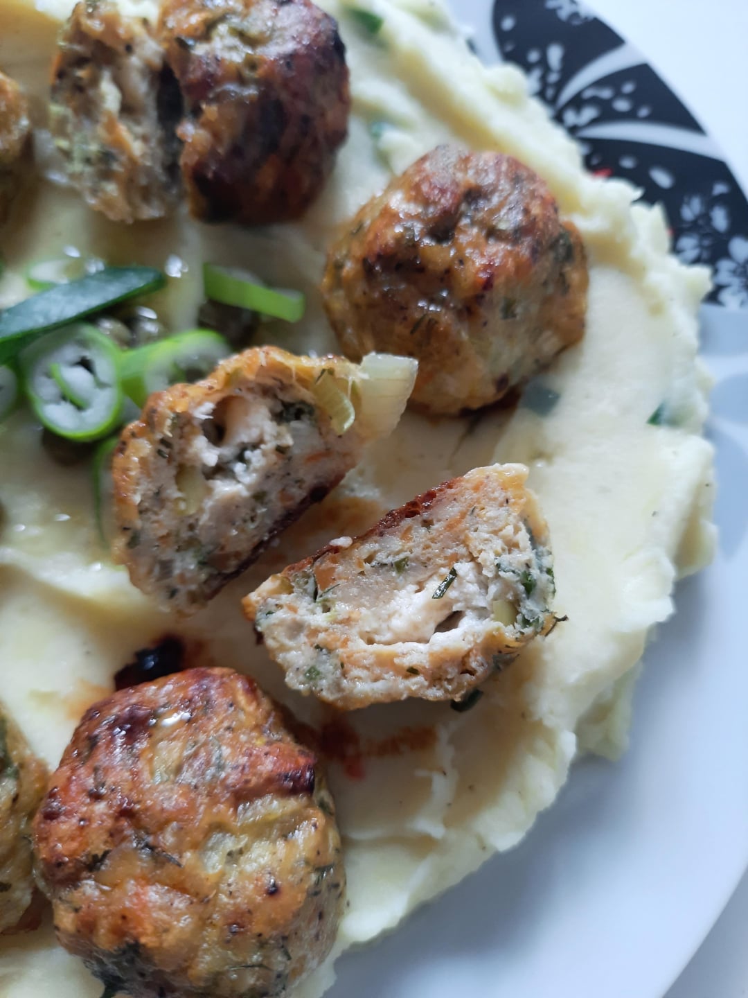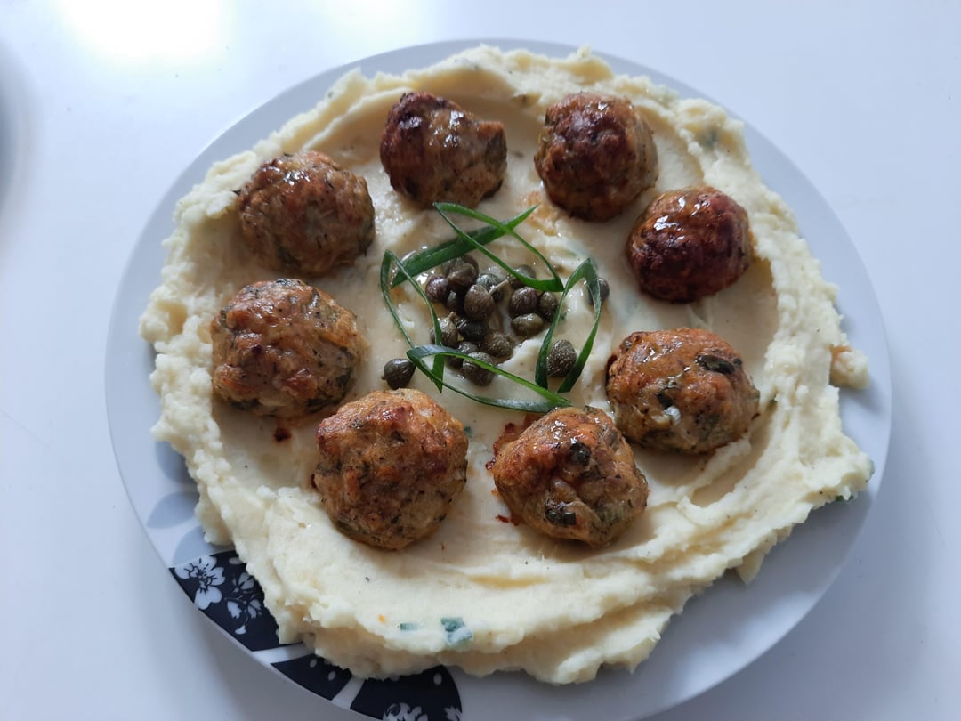 Chicken meatballs stuffed with cheese served with mashed potatoes / pilaf (rice with veggies).by Glittering-Boss-911 1 Comment Grandday4itlike 2 weeks ago Nice!