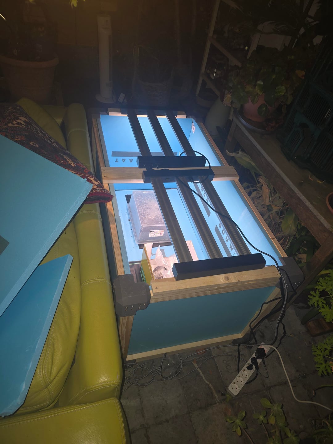 Took me some time to design and build but I managed to make a massive nursery for my peppers and miricle berries. The lights are 360w total and I plan to line the inside with mylar but for now I'm happy with how it turned out. Instead of CAD I made a mockup in 3dsmax and somehow it all worked first try haha. Man, first thing I ever made with wood and its pretty sturdy!