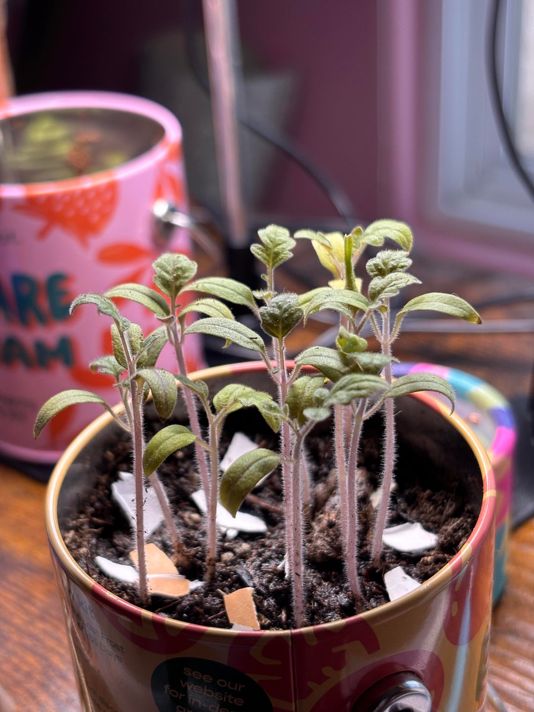 First time gardener here-I felt like my cherry tomato sprouts were getting too crowded (last photo) so I transplanted them to new containers last Friday for more space. I think I damaged the roots a little while doing this and they seem to be going through transplant shock. Should I water them every day just this week to get them through it? The seed leaves seem to be turning yellow while the true leaves are mostly ok; not sure if I should ease up on the watering and let the seed leaves fall at this stage. Located in 10b, Southern California.