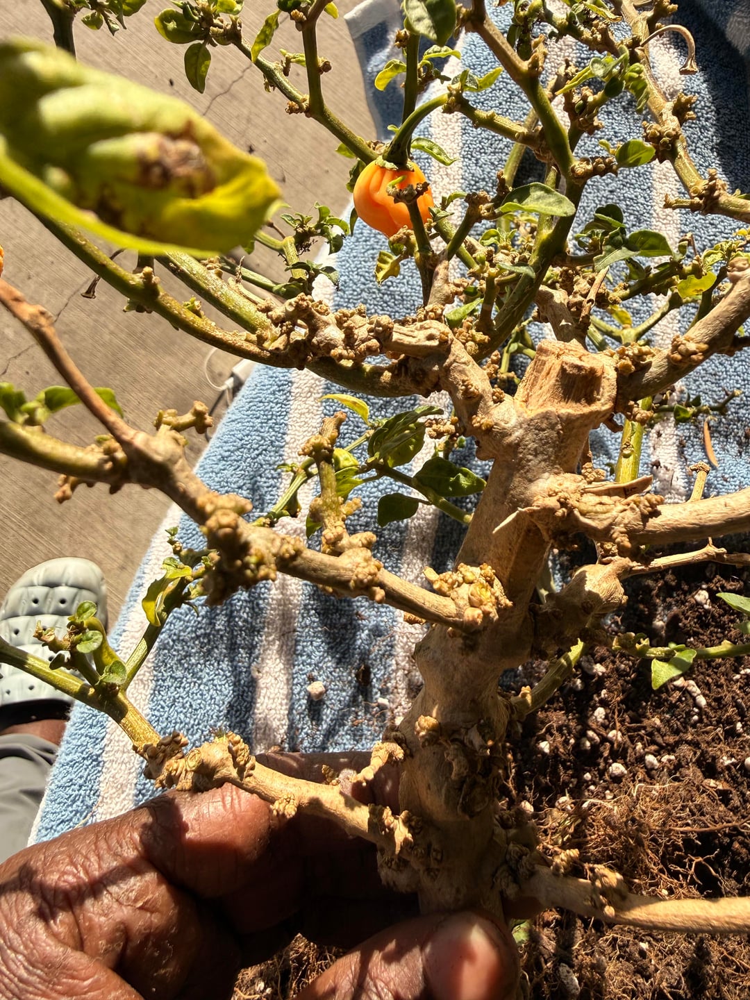 I believe it’s a scotch bonnet pepper plant that I’ve had for a couple years now. Was going to make it a fun bonsai/bonchi experiment cuz of its odd look but suddenly was concerned that its diseased. It was never a great producer and grew more warts than fruit. Leaves are always small and mishappen. Never bothered to separate it from the other peppers because I thought they were harmless galls but bare-handling it and observing closely again for the first time in awhile grossed me out so much I thought I should ask. Any idea if I should burn this thing in fire?