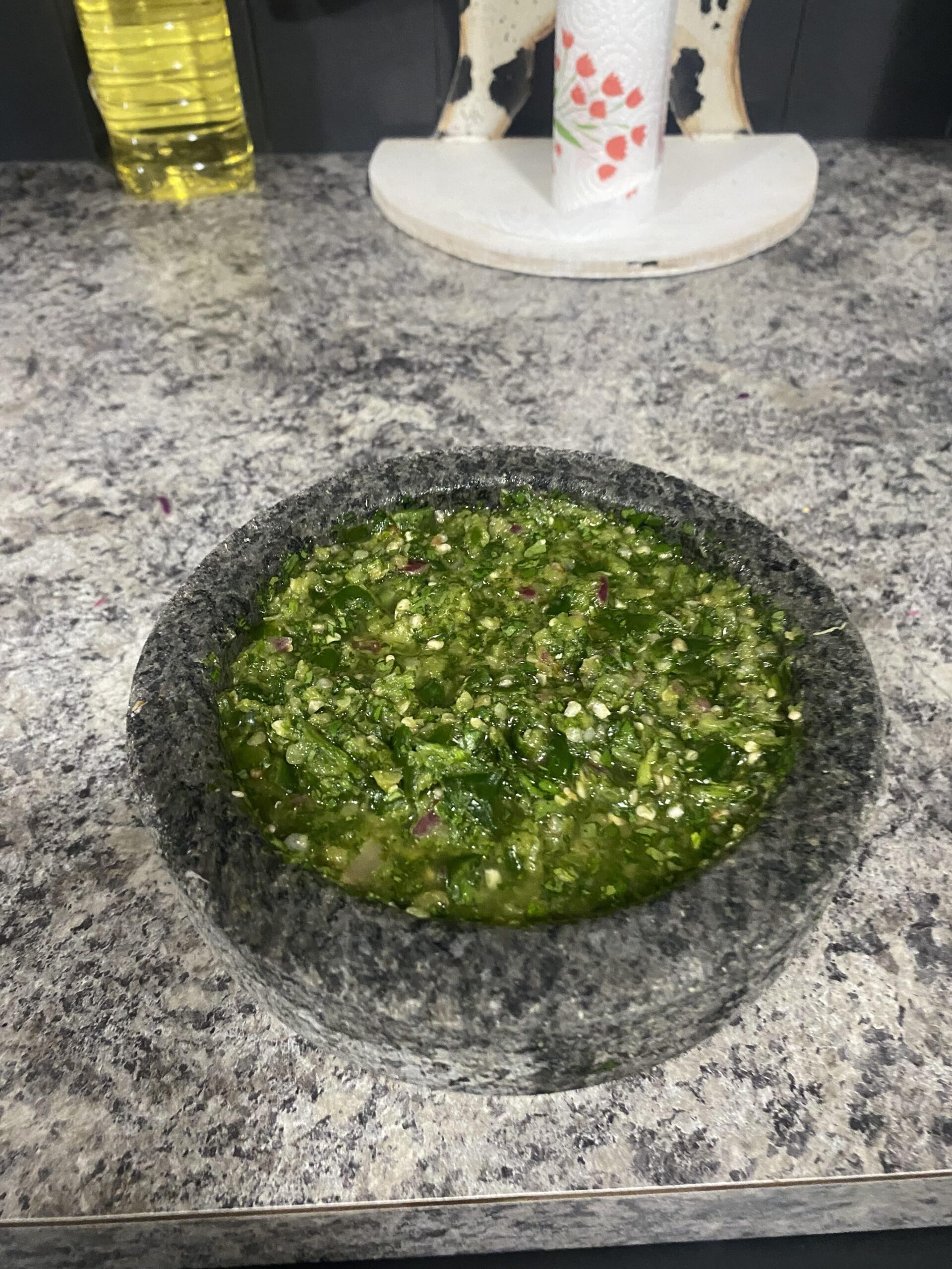 1 lb. of arbol chilies green8 cloves of garlic 1/2 red onion1/2 bunch cilantro minced1 lime juiced1 Tbs of chicken bouillon1/2 Tsp saltby MaatCrid 2 Comments Fuzzy_Welcome8348 1 day ago Looks tasty!! twizyo 1 day ago this really does look tasty. so much so that i might have to try putting a batch together tomorrow for taco tuesday!