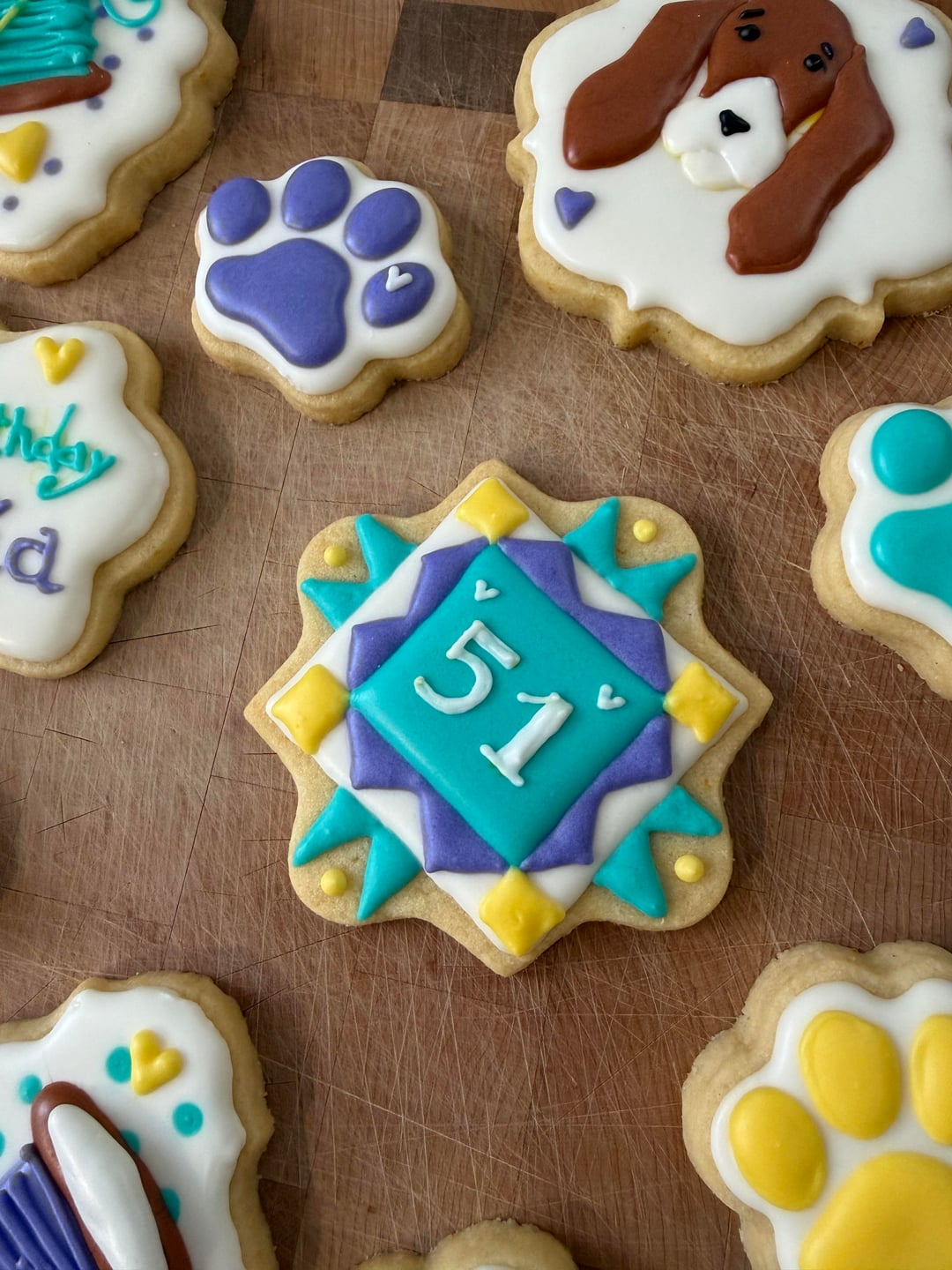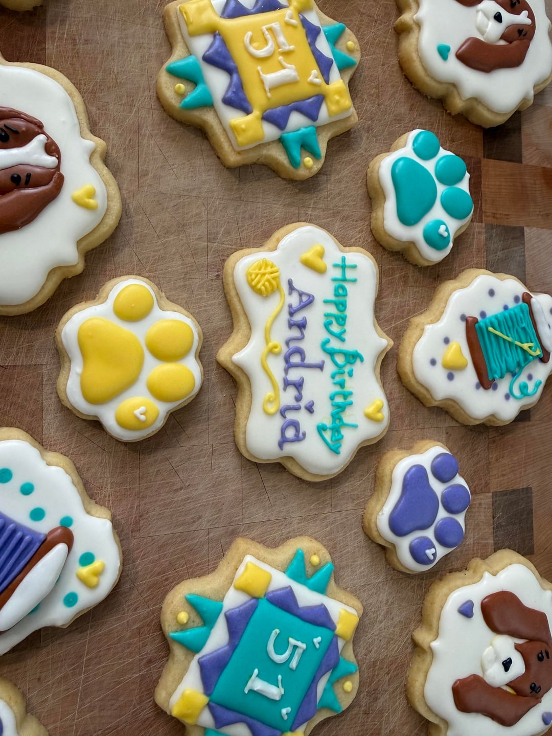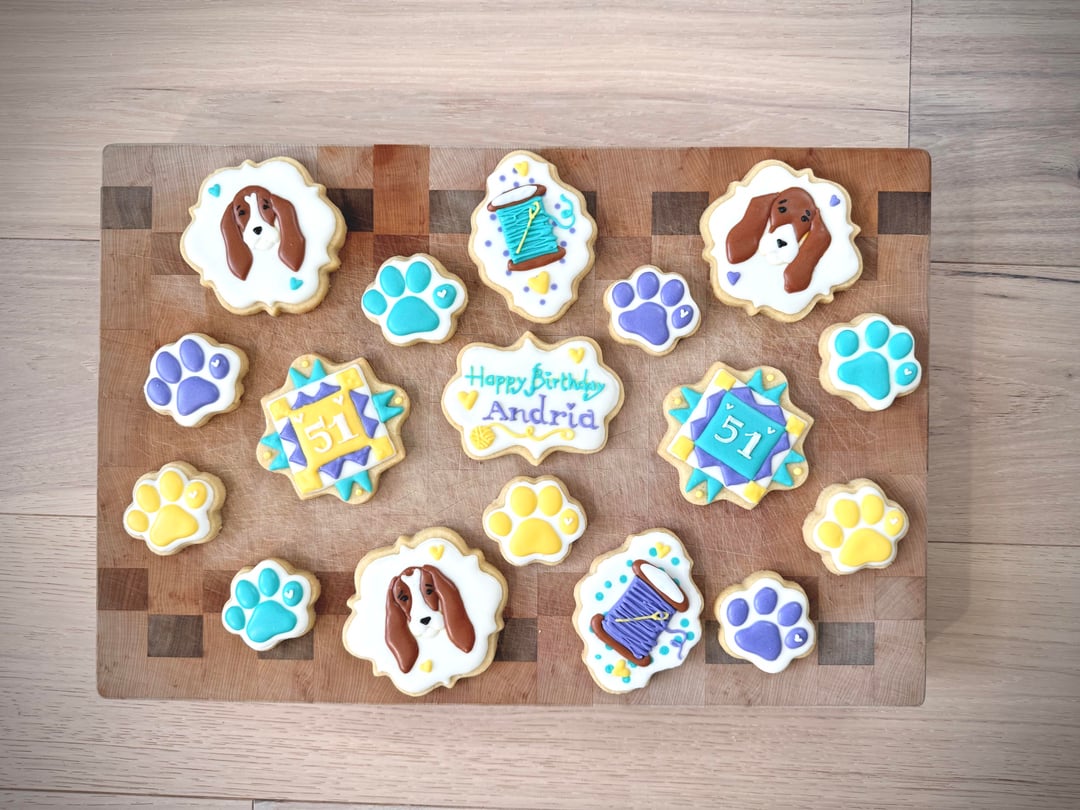 This is my first time making full size cookies too and I learned so much (and made many mistakes), and had so much fun! The bobbins I had seen the design somewhere online before, but everything else I sketched up myself 🙂 I definitely want to practice designing more and doing good fonts/text. I don't have a projector.