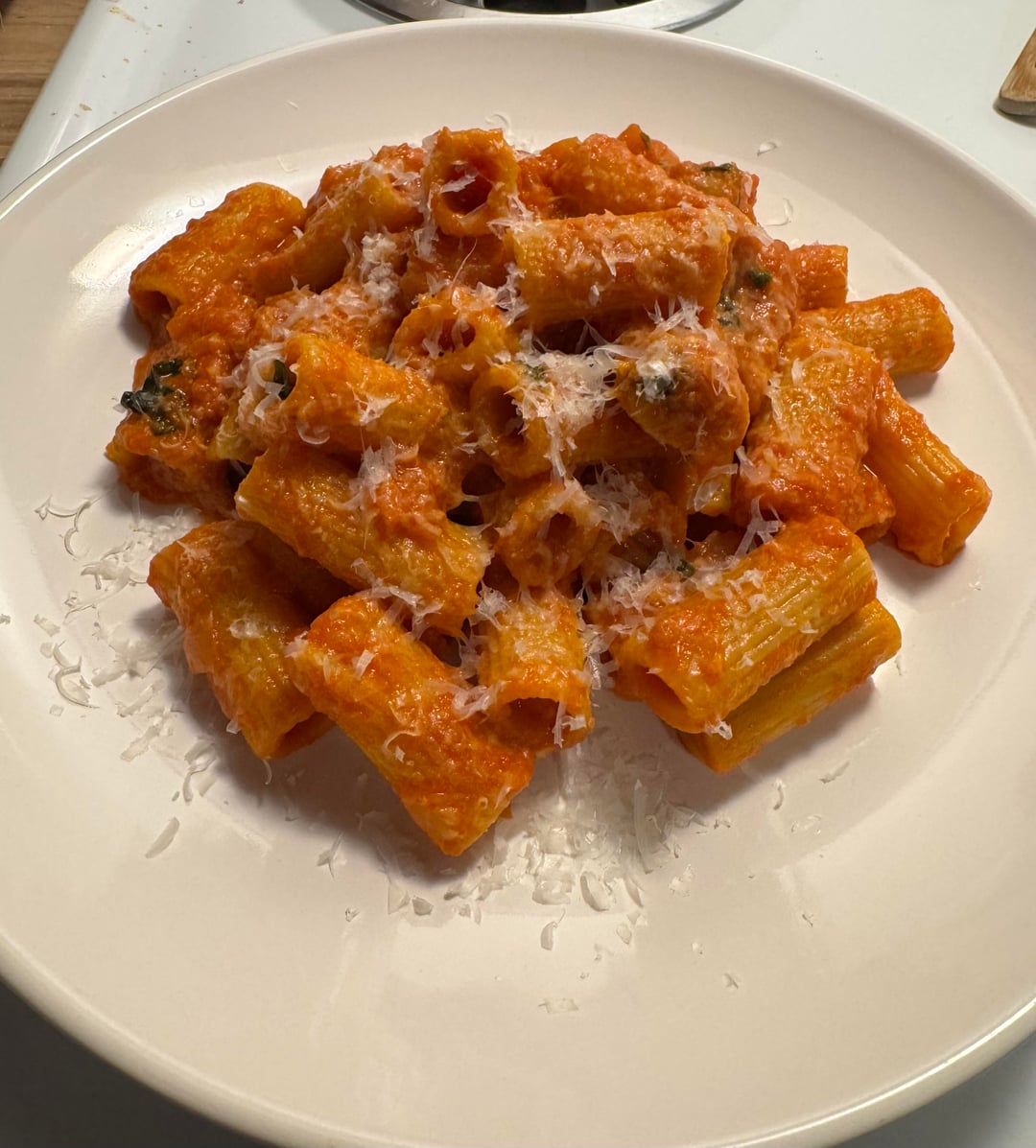 Here is the recipe: https://www.allrecipes.com/recipe/260014/rigatoni-al-segreto-rigatoni-with-secret-sauce/