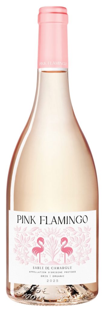 Yet there is more to it. The flamingo is not a focus group-generated motif, but rather a nod to the remarkable terroir at Domaine Royal de Jarras. The estate, owned by Maison Pommery & Associés and part of the Vranken family group for more than 20 years, sits at the mouth of the Rhône. Between the vineyards, wild flamingos roam the wetlands.