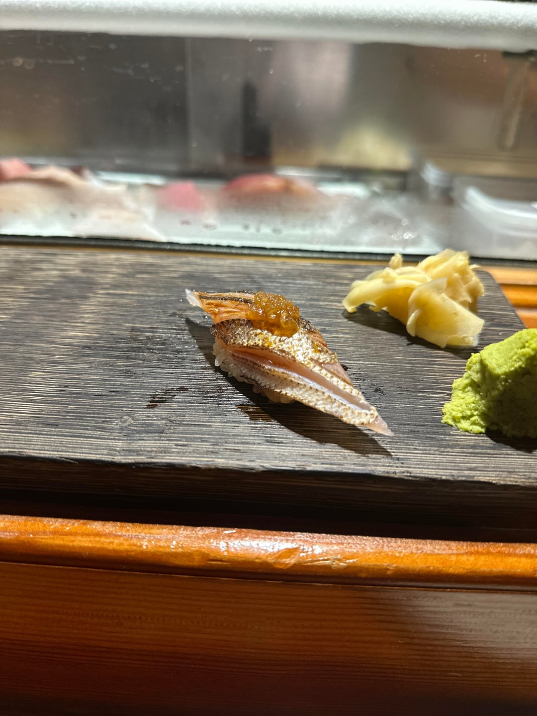 8. Kamasu aburi w thin yuzu kosho, actual kamasu was pretty good – wasn’t huge on the yuzu kosho but inoffensive given how thin the sauce was