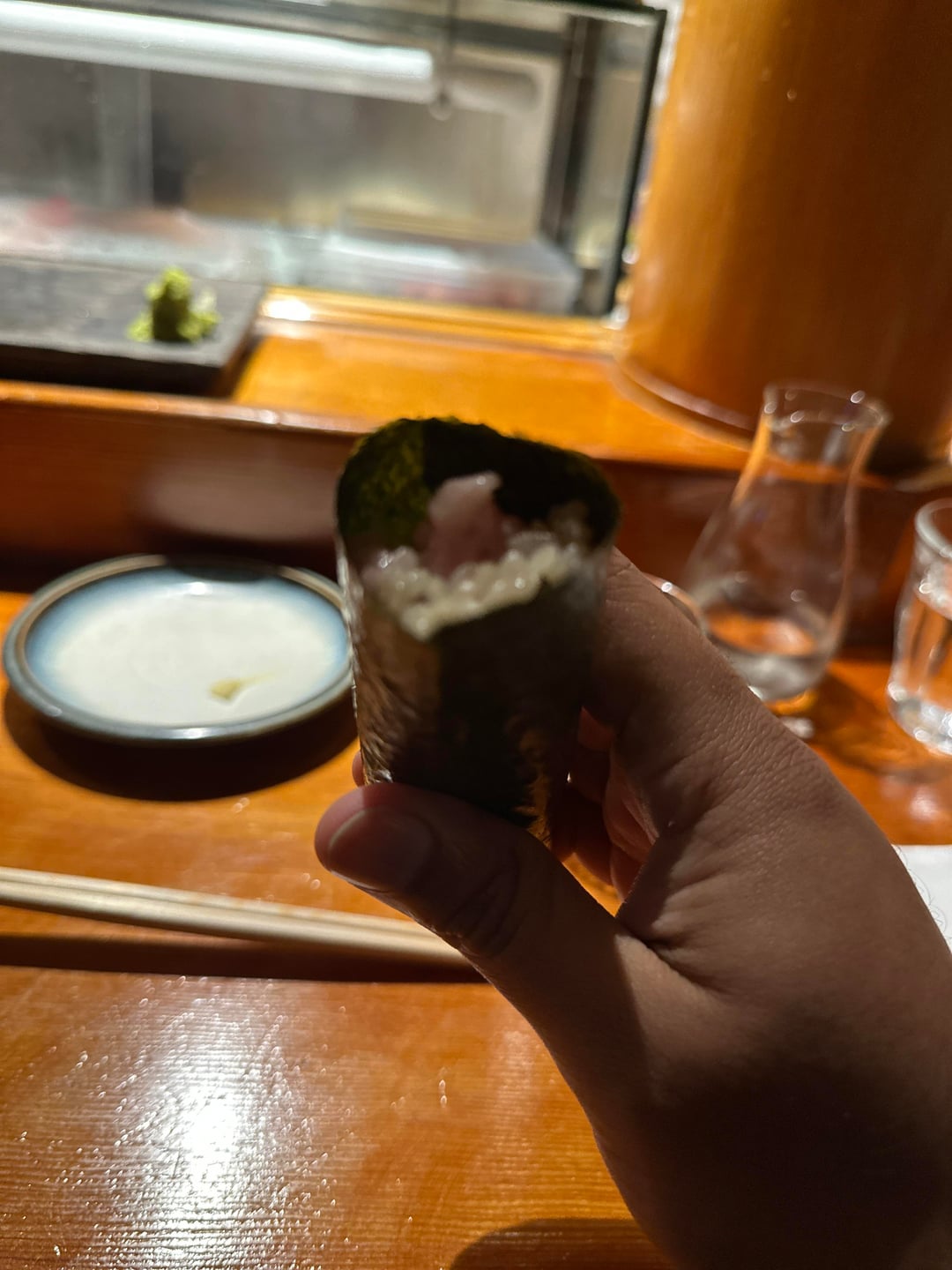 9. The “you’ve ordered too much” akamutsu shisho temaki