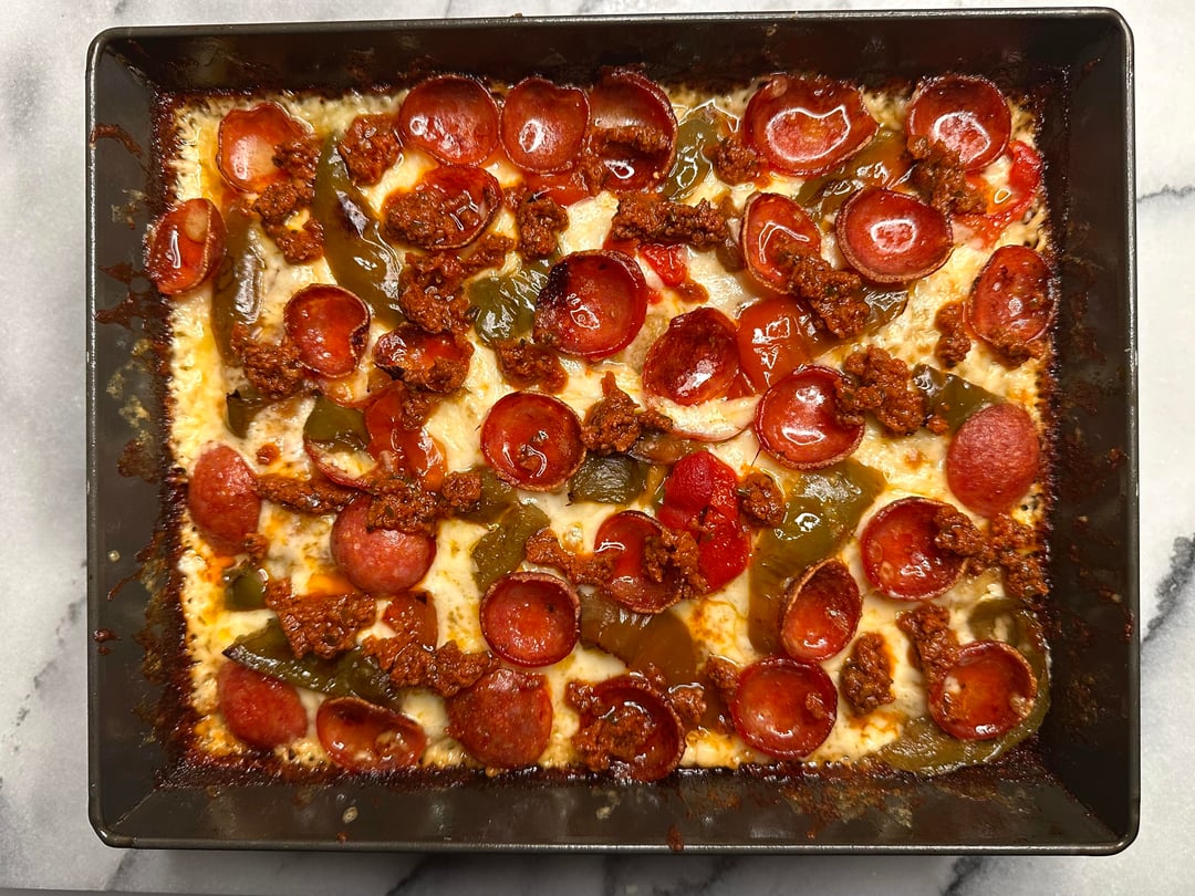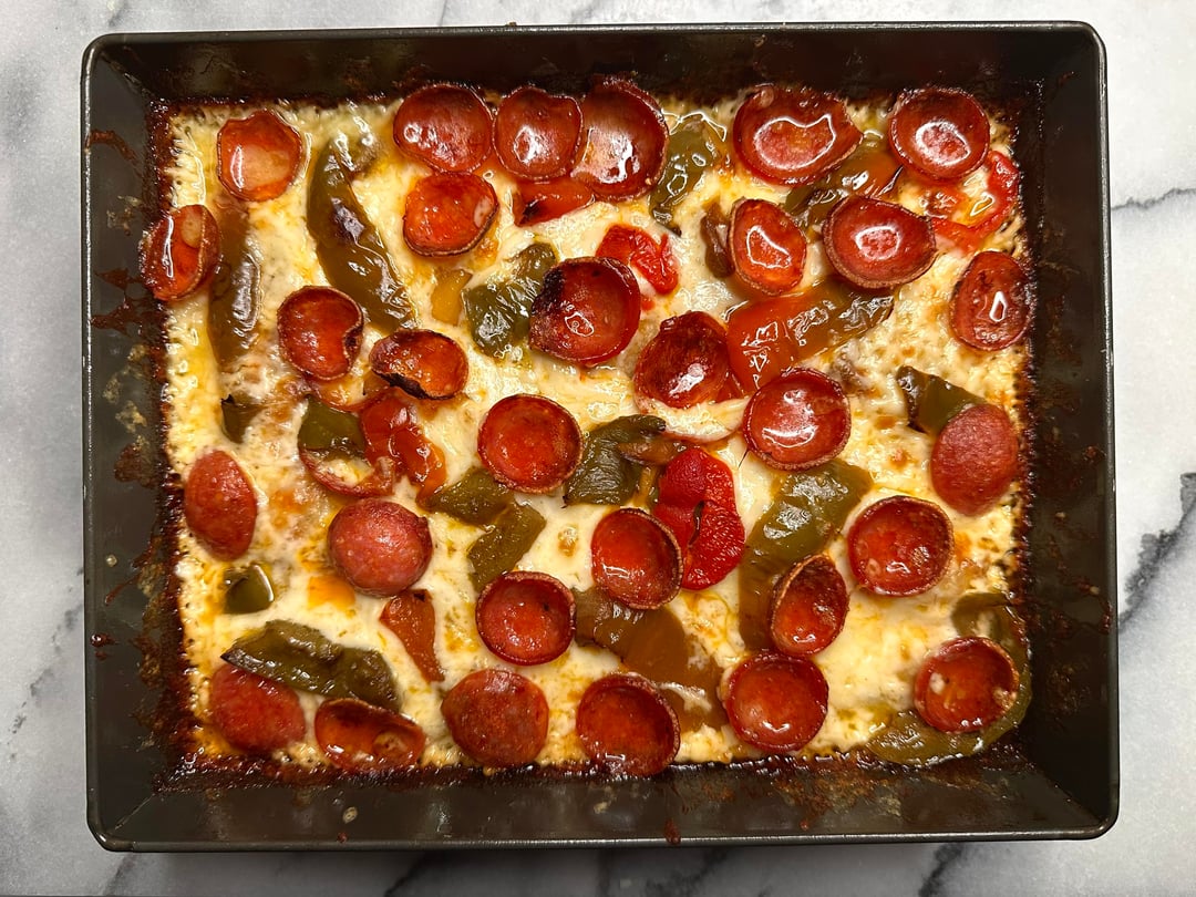 Damn! Love when it’s pretty much focaccia pizza, I tried this in cast iron, it was well seasoned pan, but cheese still wanted to stick