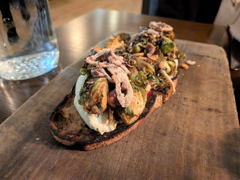 Burrata and Brussels sprouts at The Dawson. Photo by Andrew Davis