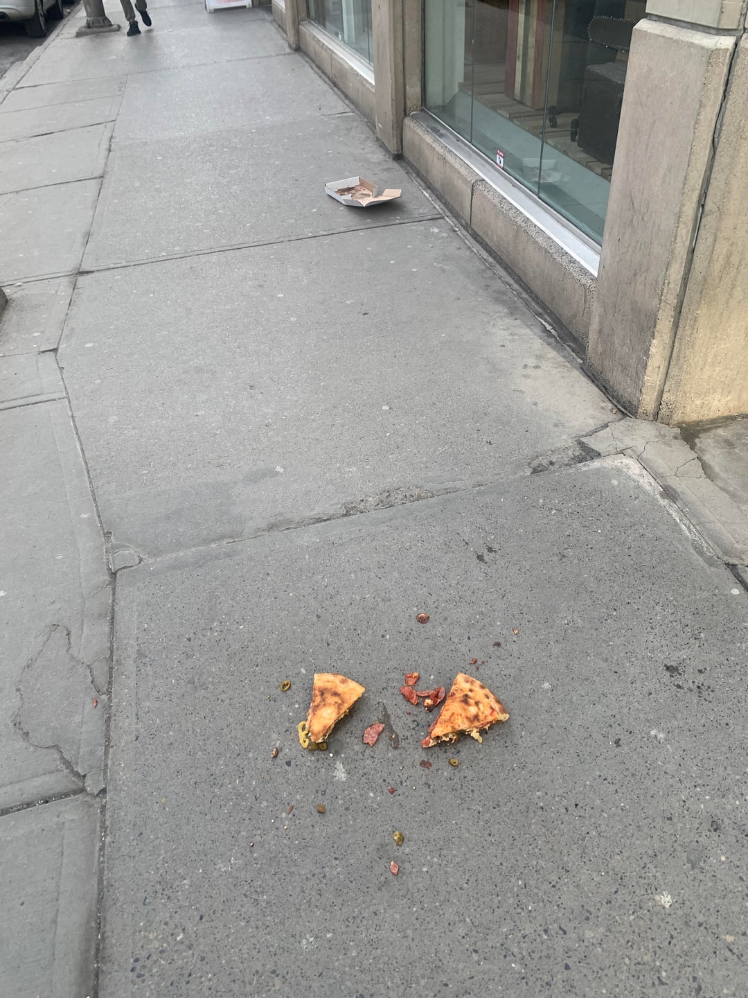 Calgary , Stephen avenue pedestrian mall. came across this crime scene.Was it a slip and fall? A statement about the quality?If an unchaperoned pizza is found in the urban jungle did a crime occur?by DavieStBaconStan 4 Comments Phoenixpizzaiolo21 5 hours ago There is no time limit when it comes to pizza! Pick it up and eat it!!!! mjp31514 5 hours ago More forensic evidence is needed. This could be a tragic accident, a crime of passion, or deliberate insubordination. iiitslavviii 5 hours ago the real crime is that we as a society allowed this to happen, no pizza left behind Meadbelly 5 hours ago A slice is a tragedy… – Stalin or some shit