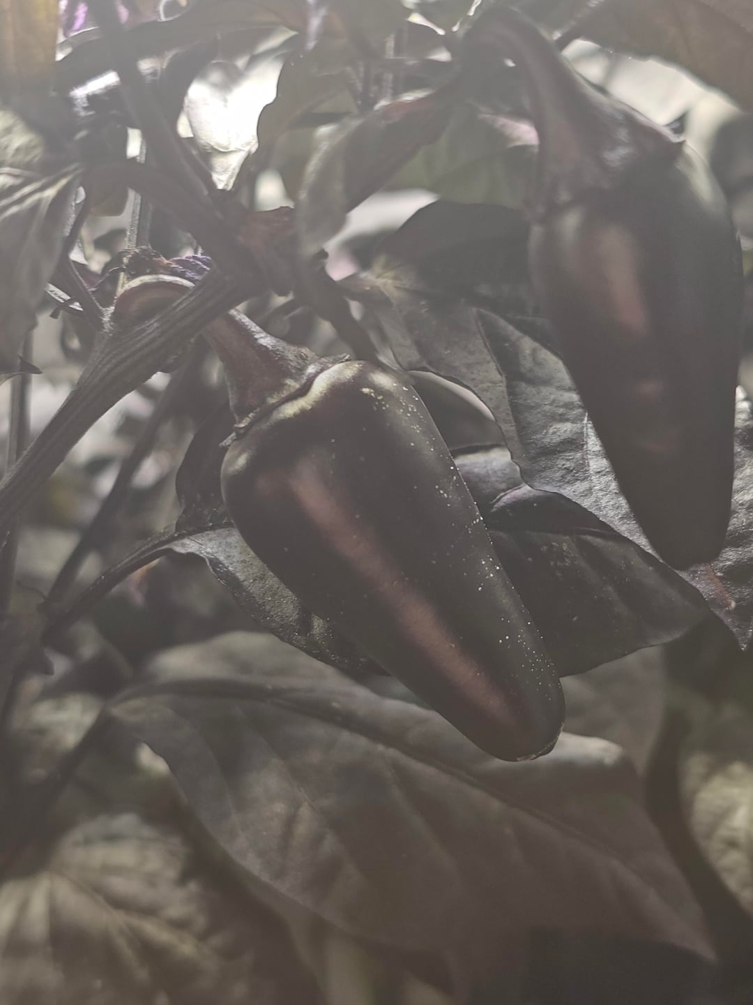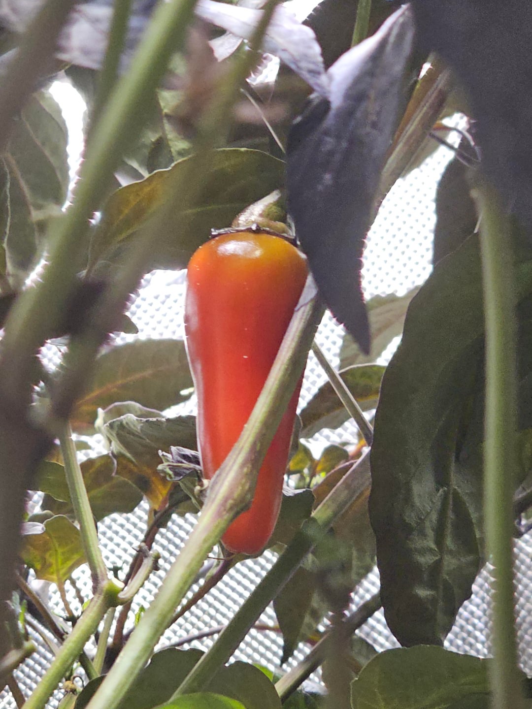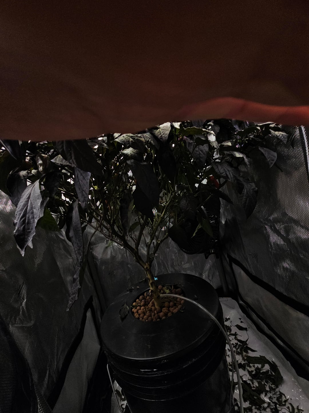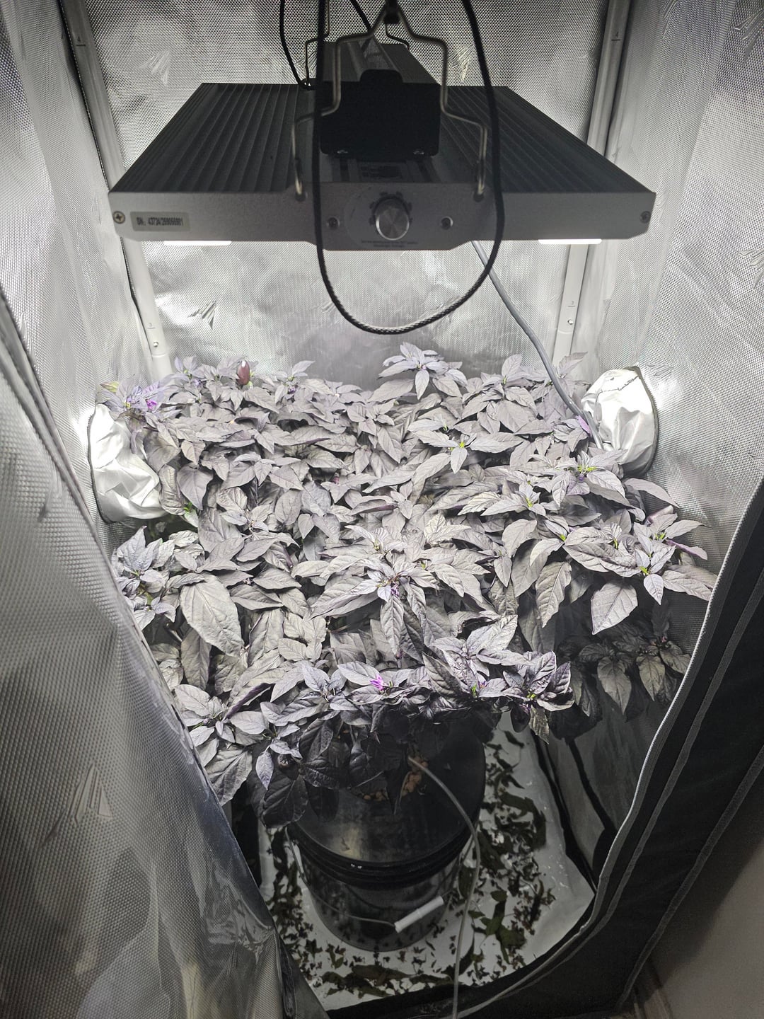 This plant exploded so much in this 4x4x7 tent that it's completelyblocked the lower part of the canopy from getting any light. It's still actively growing and producing lots of peppers, maybe 12 to 18 right now? Despite the lower leaves falling off slowly. Has a very strong perfumy taste when mostly ripe, not as sweet as I expected, definitely a few times hotter than a jalapeno as advertised.