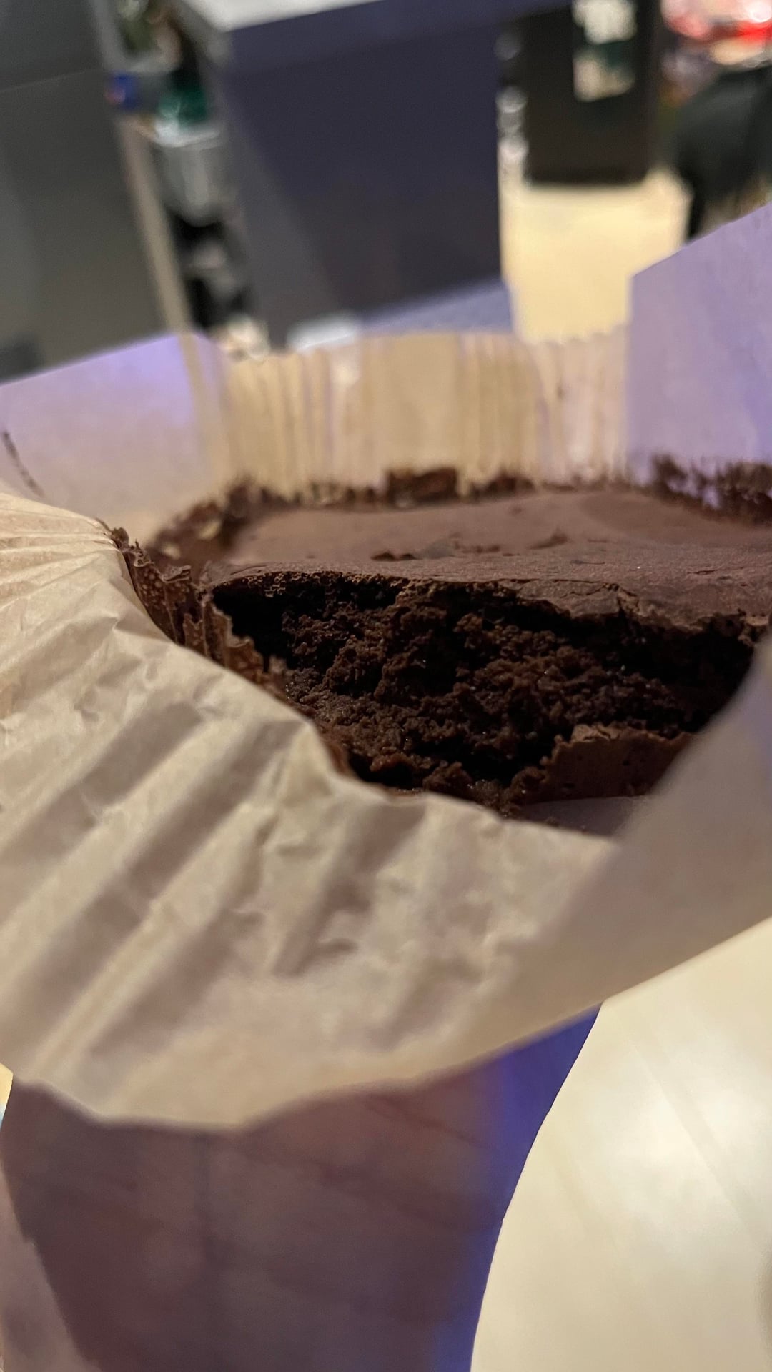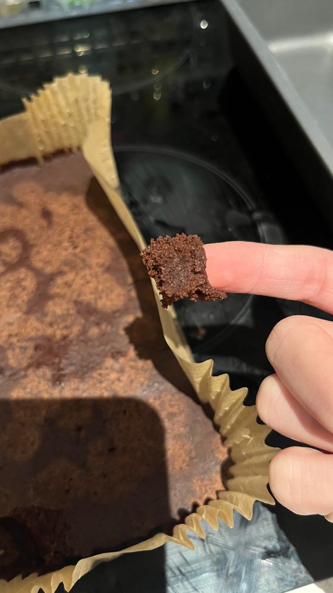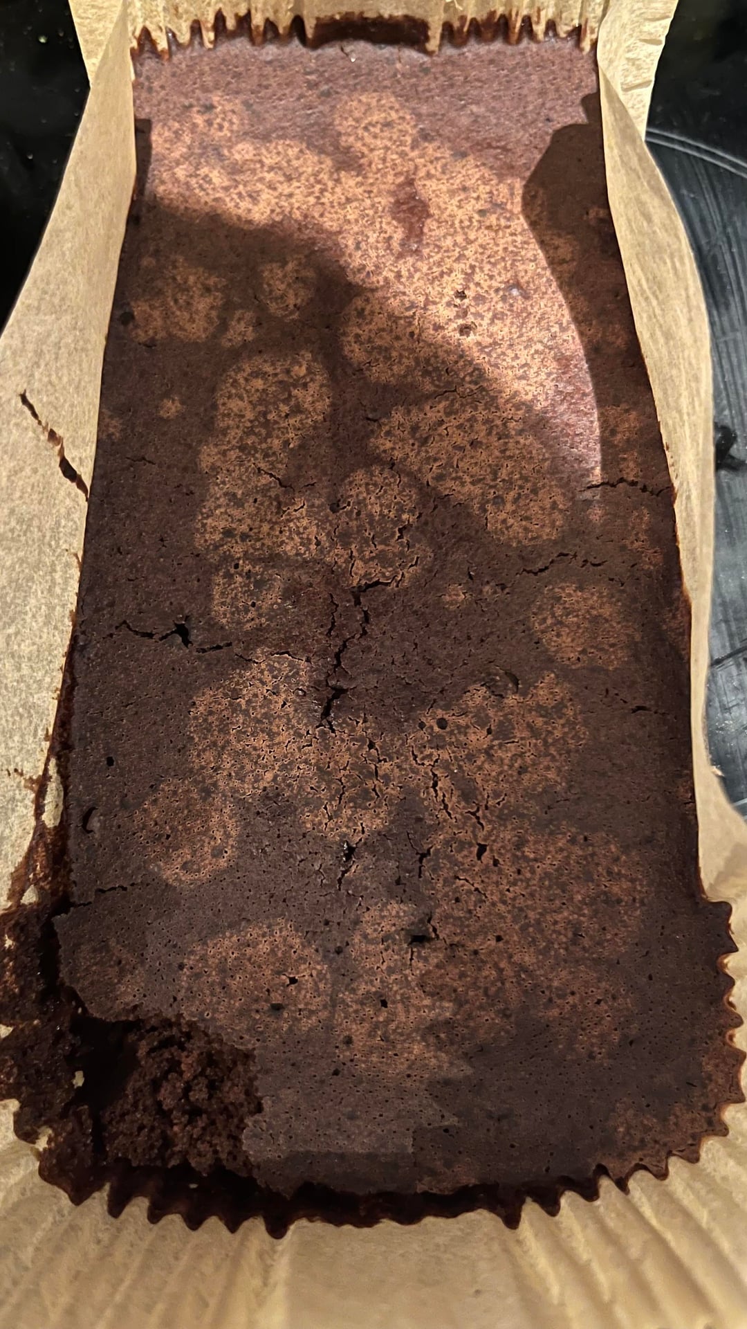 I’d say it turned out pretty bleh in flavour – I don’t think it was sweet enough. it just tastes like really pure chocolate (i’m assuming from cocoa powder). after few mins after i took it out of the oven the top started blotching (see pics 3-4). the texture is really weird to describe – it would stick to my hands (so felt wet) but at the same time it was heavy / dense but airy. idk if the “airiness” came from the carbonated water. i’m really bad at describing textured but when i tasted it it didn’t taste like fudgy brownies or cakey. the closest thing i can put a resemblance on it would be something like a soggy wet kitchen sponge (sorry that’s a terrible analogy) – ok like it wasn’t disastrous. it was edible but far from what i’d want to get to by the time i bake this for other people. as this was just a test batch i didn’t put in any choc chips / other fancy stuff but i’d imagine they’d help a bit with taste. i also plan on using soy protein powder ultimately but have very limited at home so didn’t want to waste any on my test batch.