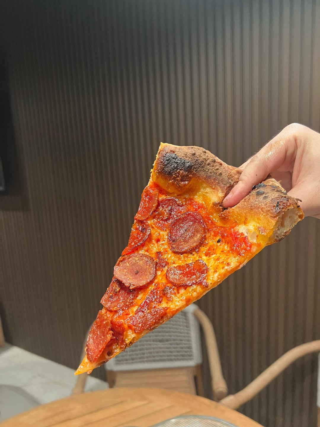 This was super fun to eat, and the crust didn't taste overcooked at all. Zero chew, and it bit off with no struggle!