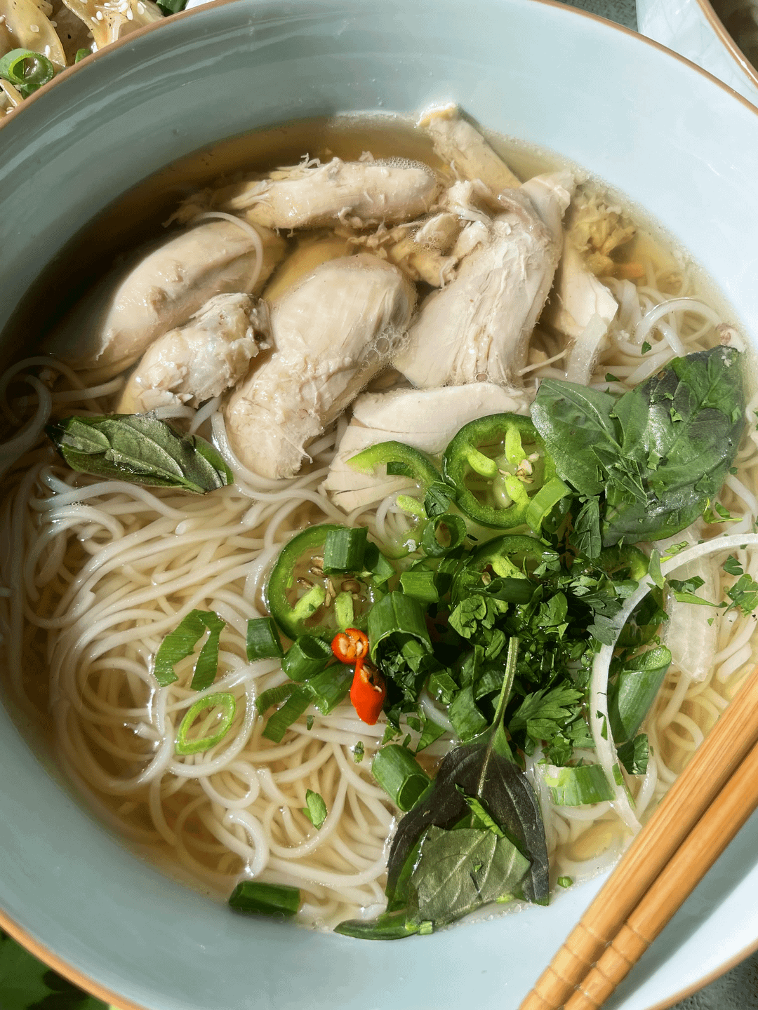 Homemade chicken pho and pork dumplings for dinner tonight