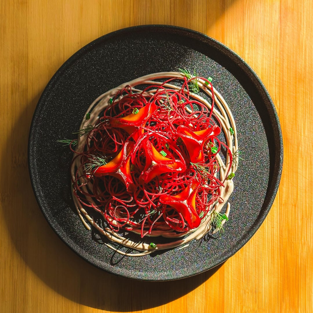 asomek 2 months ago Visually it’s stunning. I can’t say I’d be that thrilled to eat beetroot strings though. I’m assuming they’re raw?