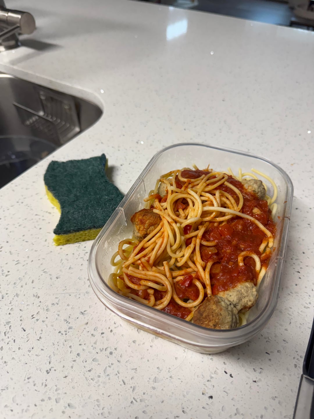 Publix spaghetti, Publix Italian meatballs, and some sauce. Sponge for scaleby Disregard_Casty 2 Comments springreturning 1 month ago Definitely an overestimate.Looks like 300-400 for the spaghetti, max.250 for the 6 meatballs (https://smartlabel.syndigo.com/id/062af3a8-79b8-4b97-bf15-5ab7dfff4a9b#nutrition)40-50 for the sauce, max.My guesstimate is about 650-700. AndiFilmEnthusiast 1 month ago Idk abou the sponges calories,but dont eat it.(jus some humor lol) The spaghetti is 800 max imo.