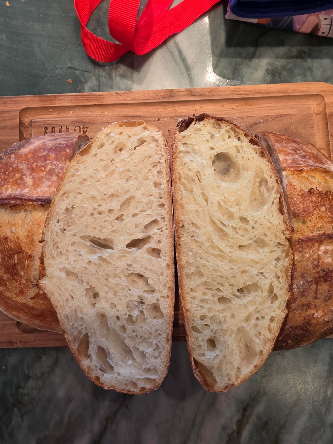 In the final result, in my opinion, the Caputo loaf looked more visually appealing. It seemed to hold the banneton shape better and had a more pronounced ear. That said, the loaf made with Rosa Branca baked well and did form an ear, albeit a more modest one — which could also be related to my scoring.