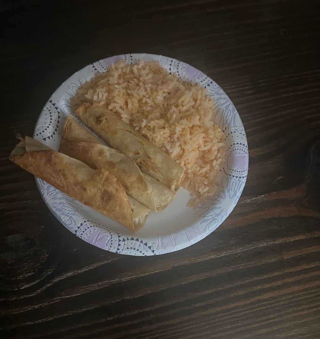 Don’t have much info sorry, my mom cooked it. Mexican rice with flautas de pollo, second pic is what I leftby Different_Dinner_181 Dining and Cooking