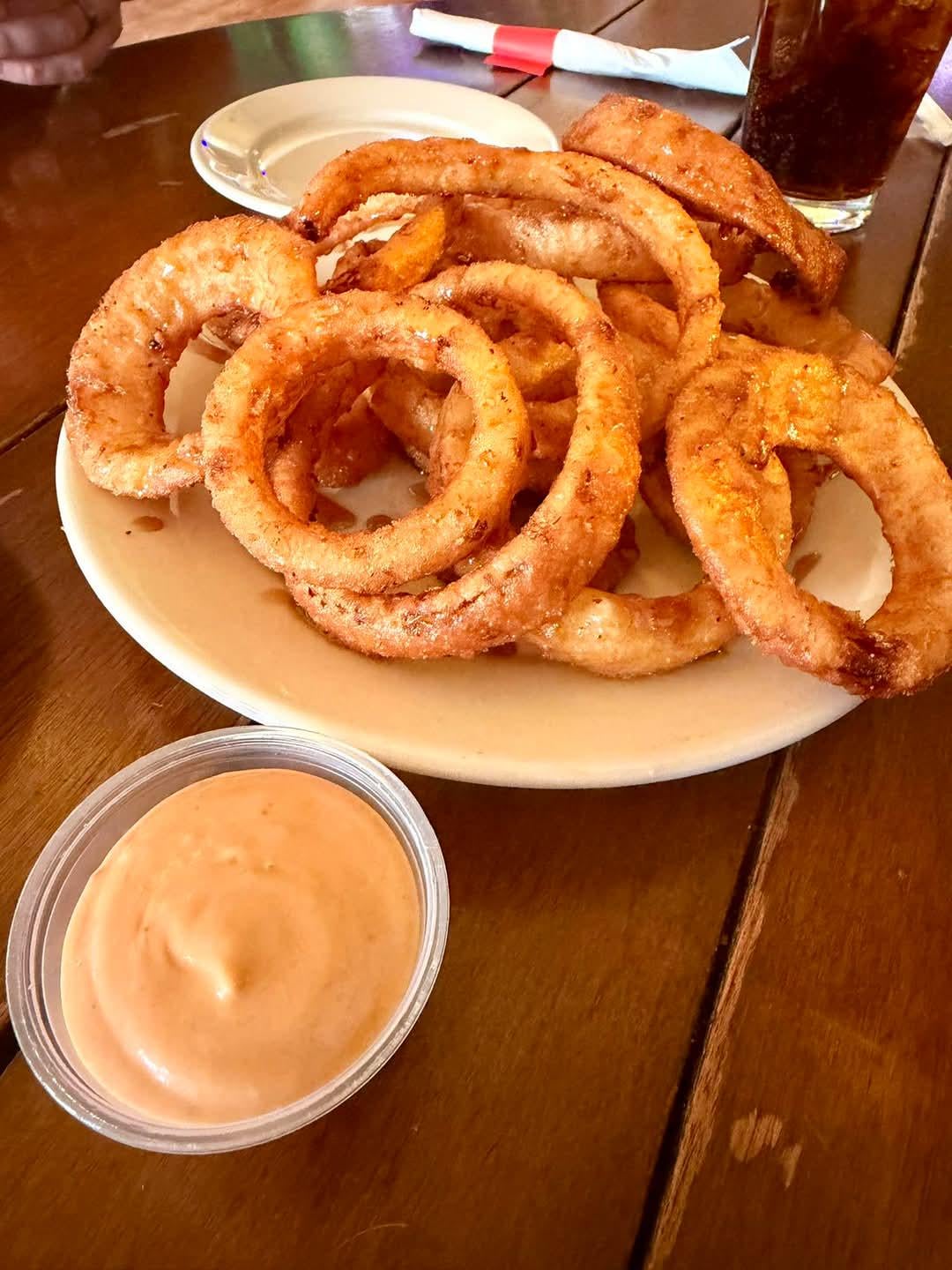 It’s a crime to not be drinking a Guinness with the Guinness battered onion rings. (Looks and sounds fantastic)