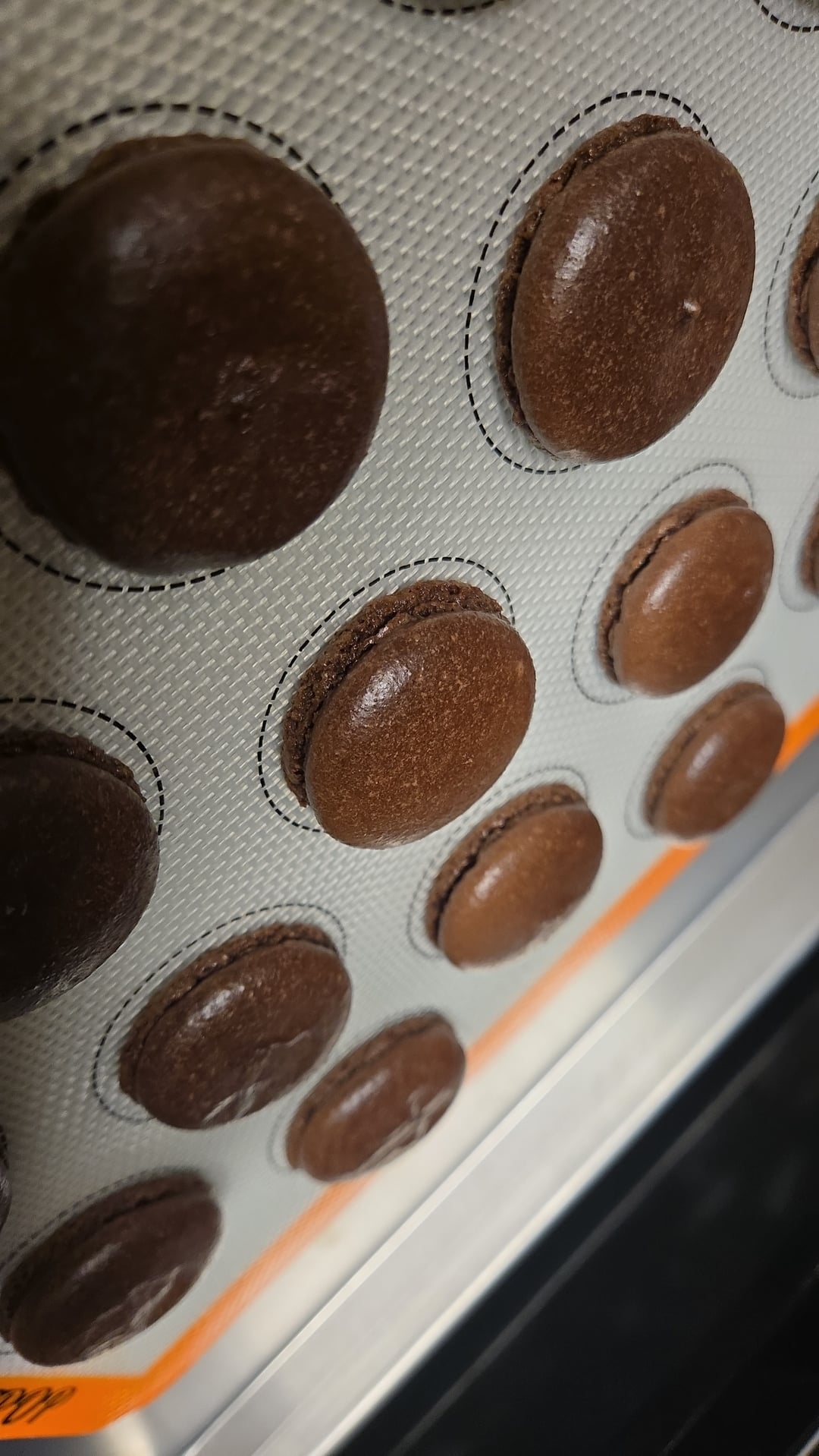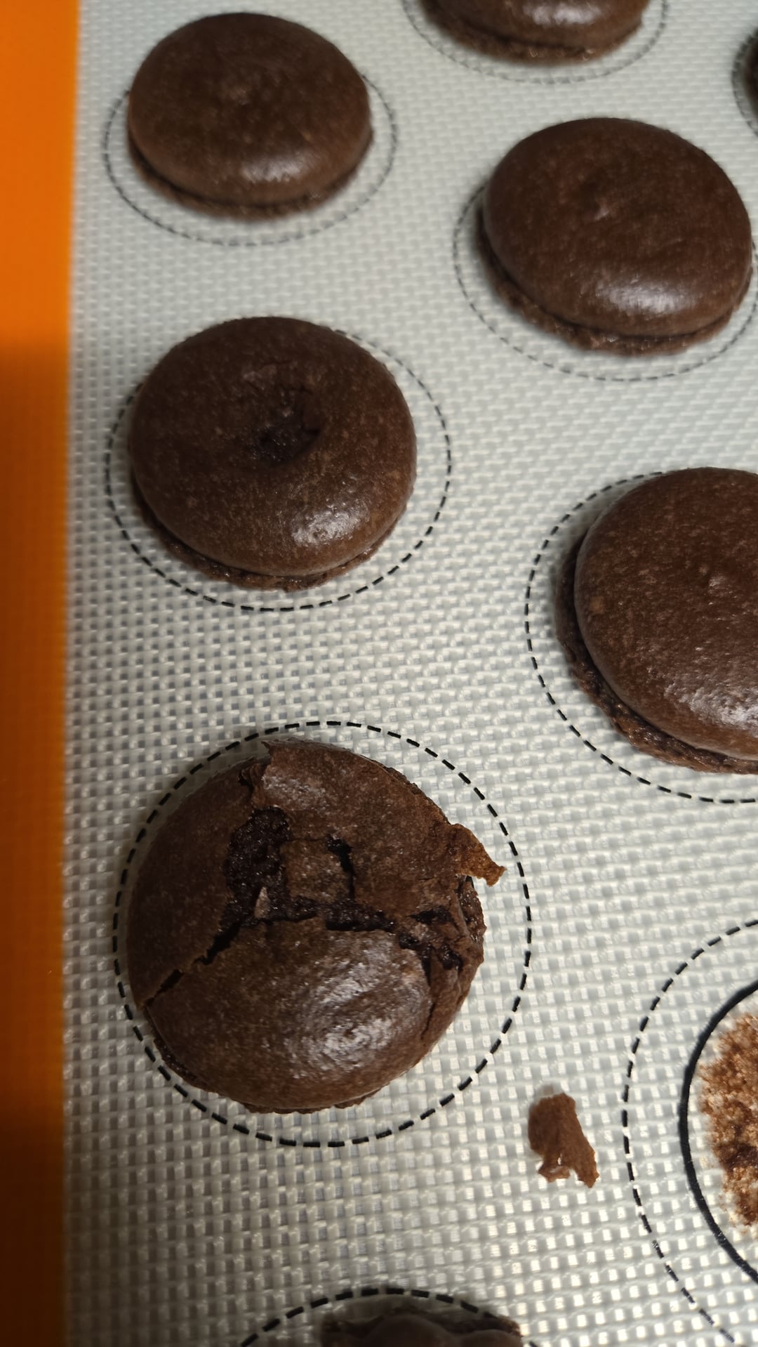 Looking for advice on where i went wrong. The batch in the photo seem to have fragile tops. Any amount of pressure seems like they crack or give on the top. They have full shells, but they are almost like brownies or cake consistency. Its the most success ive had, but still not really macarons. The feet seem decent but arent they supposed to rise a bit more? Any help would be greatly appreciated.