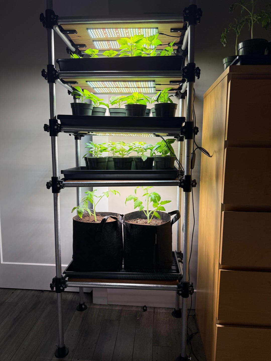I haven’t had any issues with the peppers on the upper racks and I am watering them the same way, only when needed to the best that I can tell.