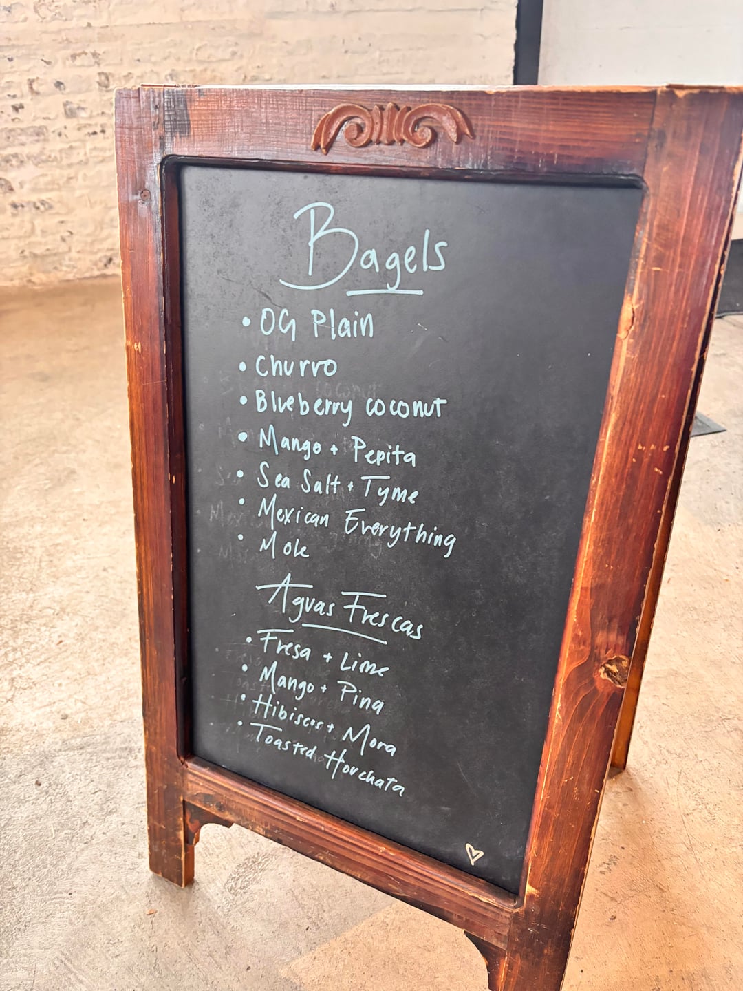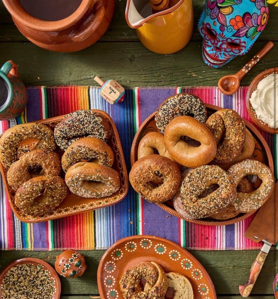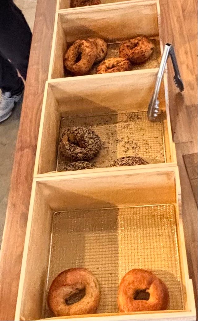 Tried everything except molé (sesame allergy); interesting flavor combinations that work. They don’t toast them, but comes with cream cheese. $5 a piece (includes cheese on side).