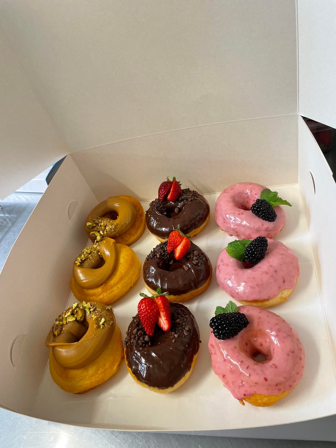 I’ve been baking professionally for 2.5 years. The first 2 years I only made vegan donuts. Here’s my progress after starting other baking 3 months ago! All 100% made and mostly self taught by me from scratch ☺️