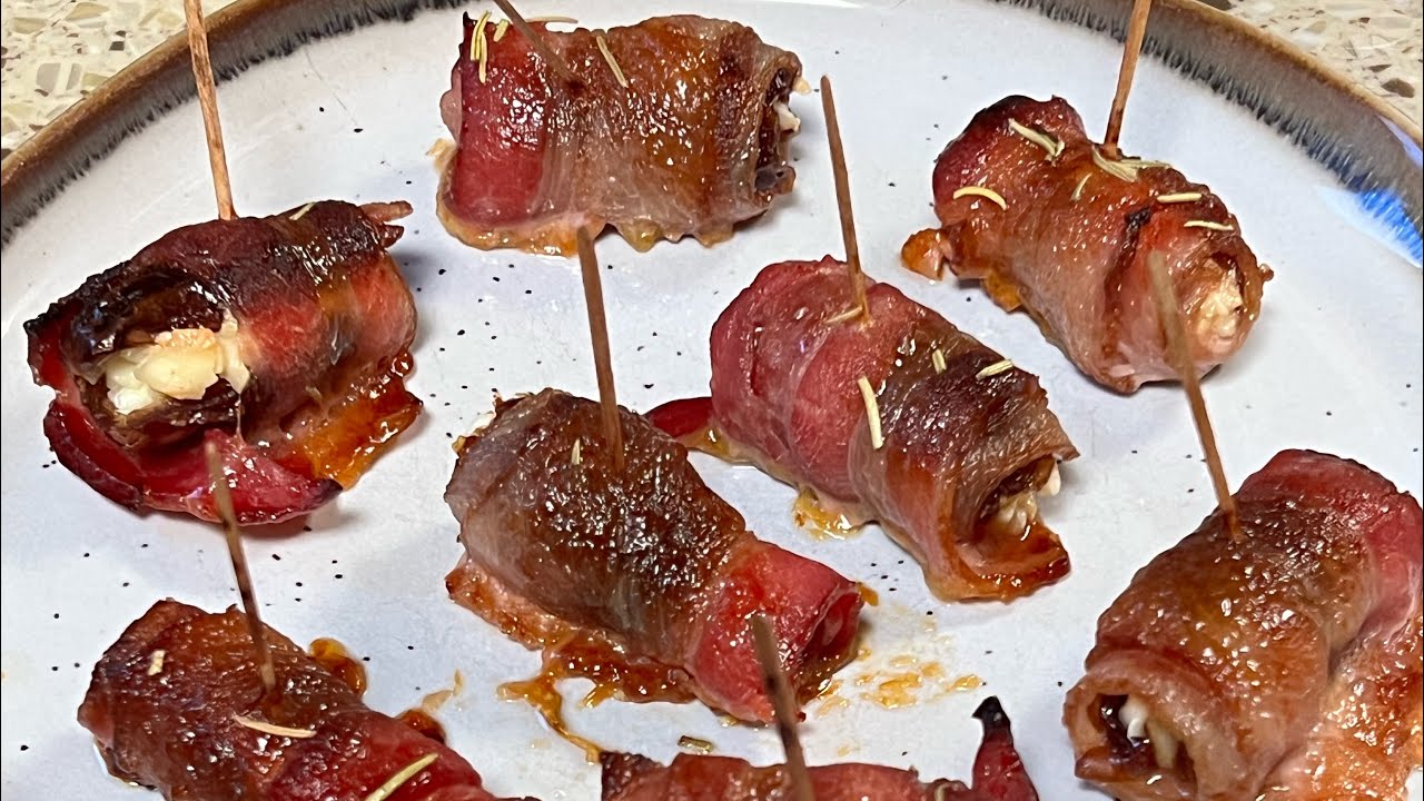 Goat cheese stuffed dates wrapped in bacon.