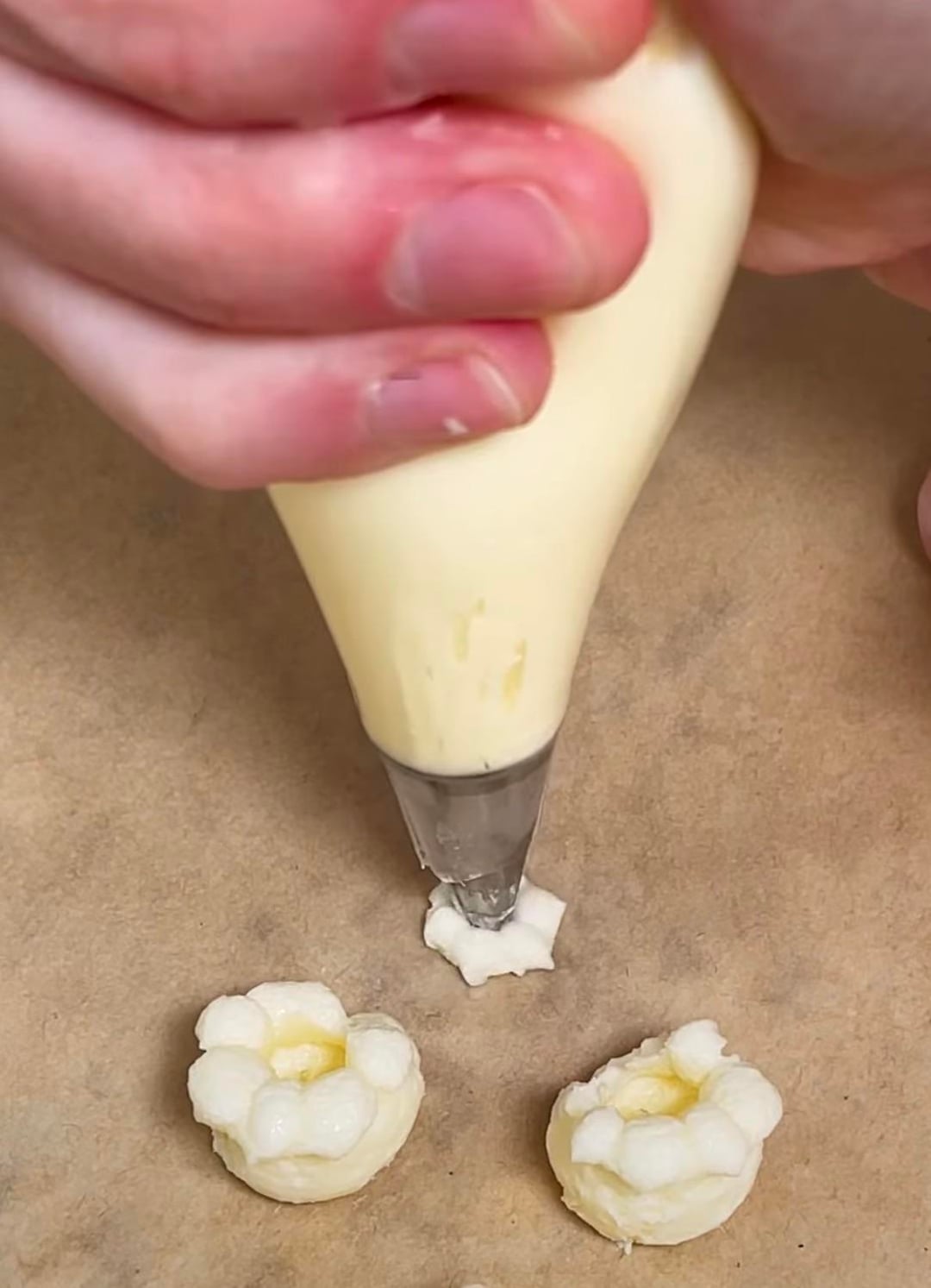 Buttercream won’t “harden” without being refrigerated and/or frozen. If you want to attempt to pipe the popcorn shaped pieces, pipe them onto a sheet pan lined with parchment paper and then pop them into the freezer. Once you’ve frosted the tops of the cupcakes regularly, use a small offset spatula or a pair of long tweezers to place the frozen popcorn pieces onto the fresh buttercream.
