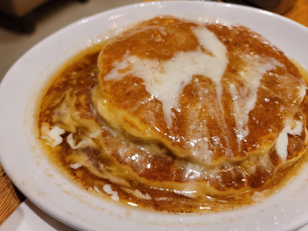I’m an eggs and bacon girl, personally. But I’ll take those pancakes! I like ‘em swimming in butter and syrup, too.