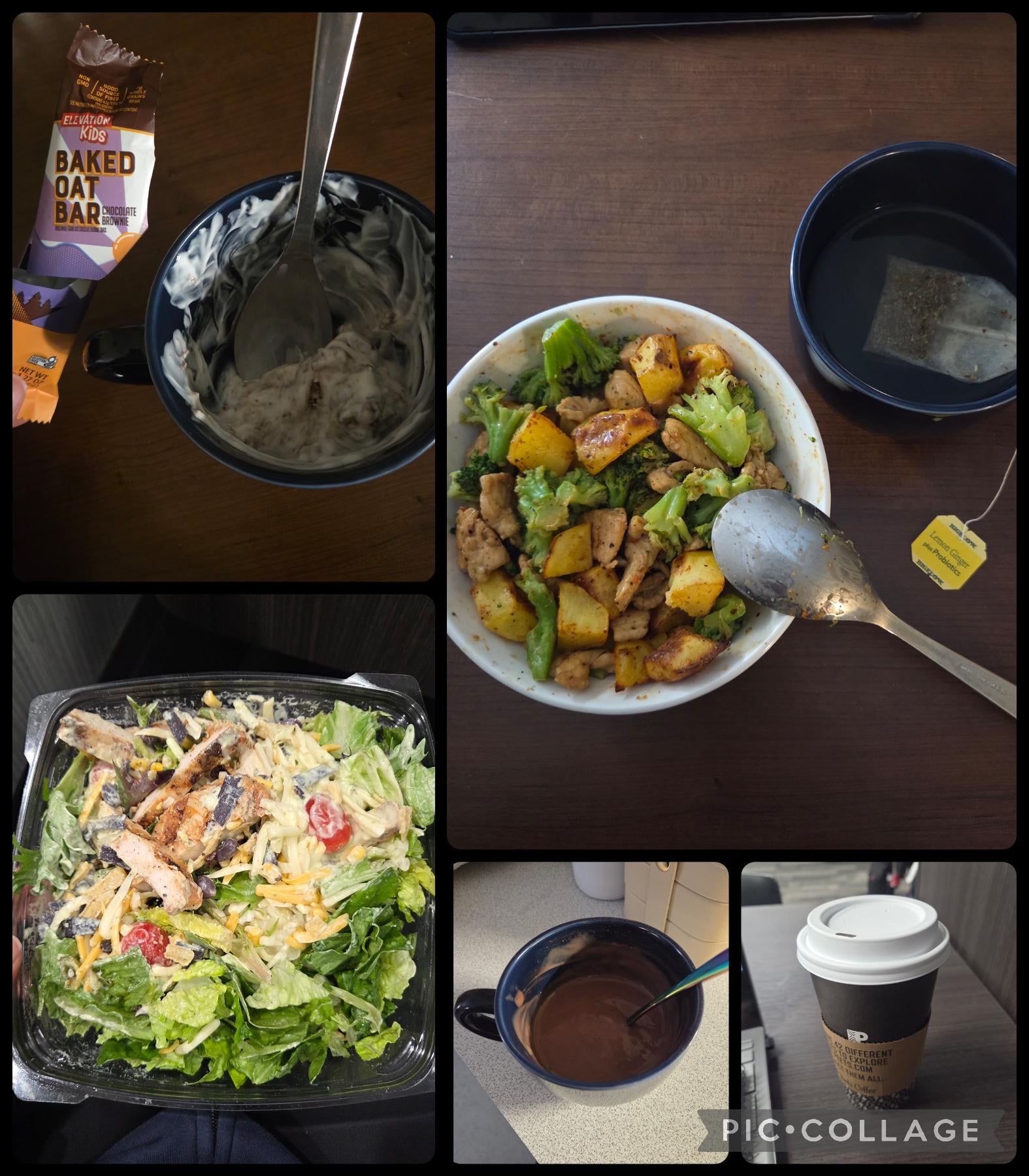 Dinner: potatoes, broccoli, and chicken with some spicy mayo and ginger lemon tea 😋 (335)