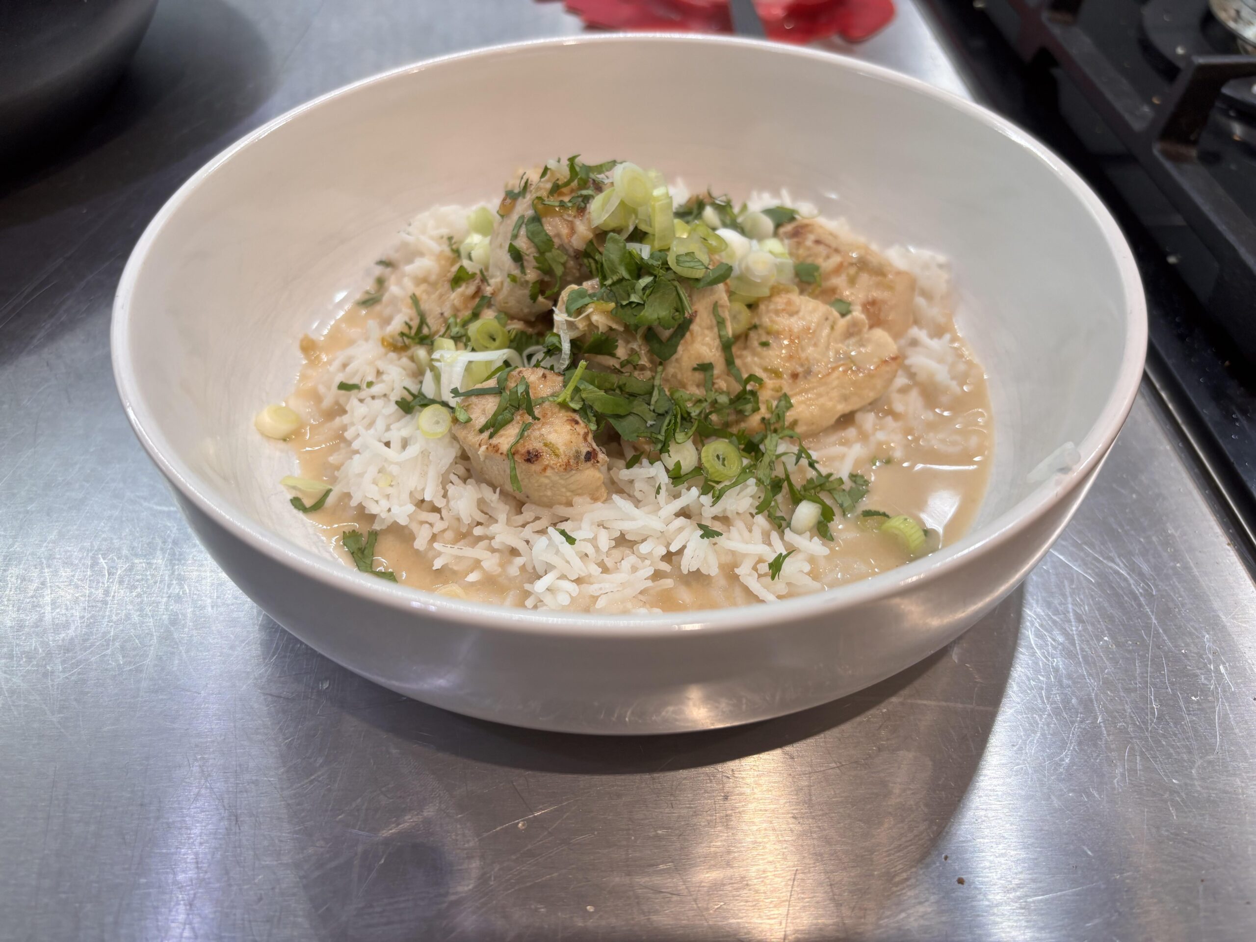 Topped with spring onion and parsley