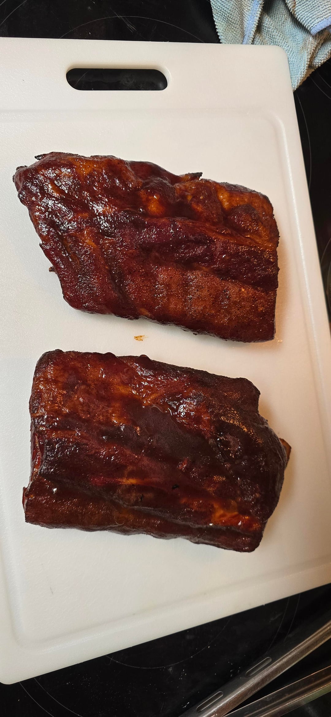 One slab of baby back ribs cut in half. Rubed/glazed two different ways. Both were goodby KJwhisperer 1 Comment ZiggyZigman 1 month ago Which rub/method did you use? They look fantastic! Which sauce did you like better?