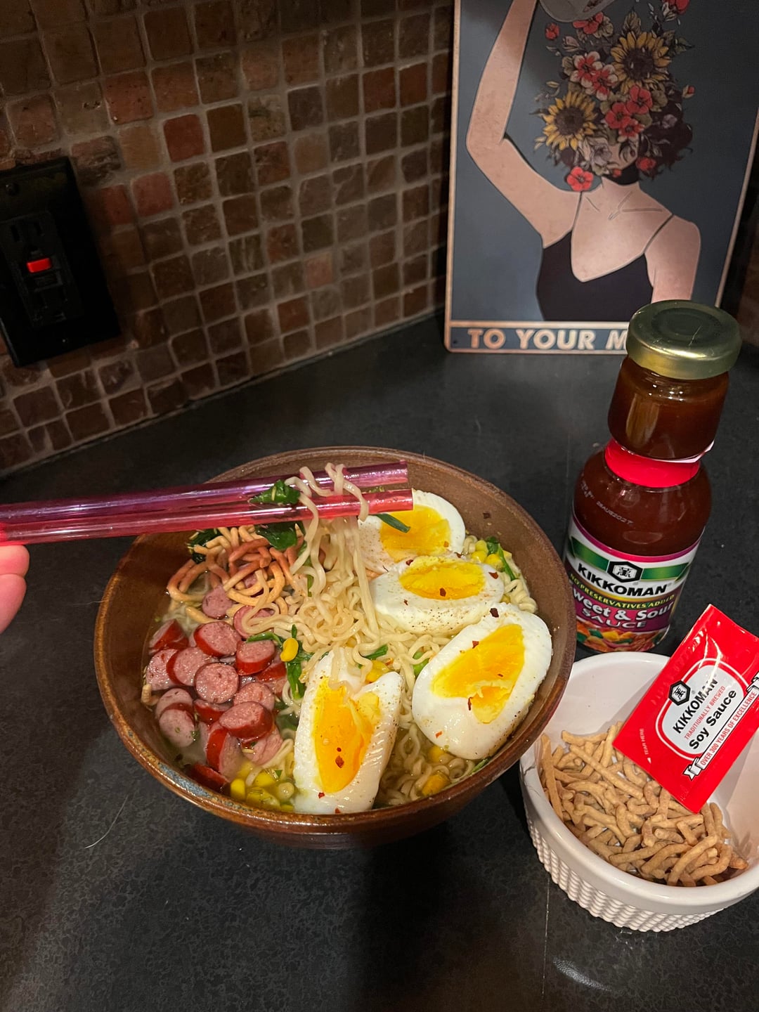 The ramen, or the straws being used as chopsticks? Lol
