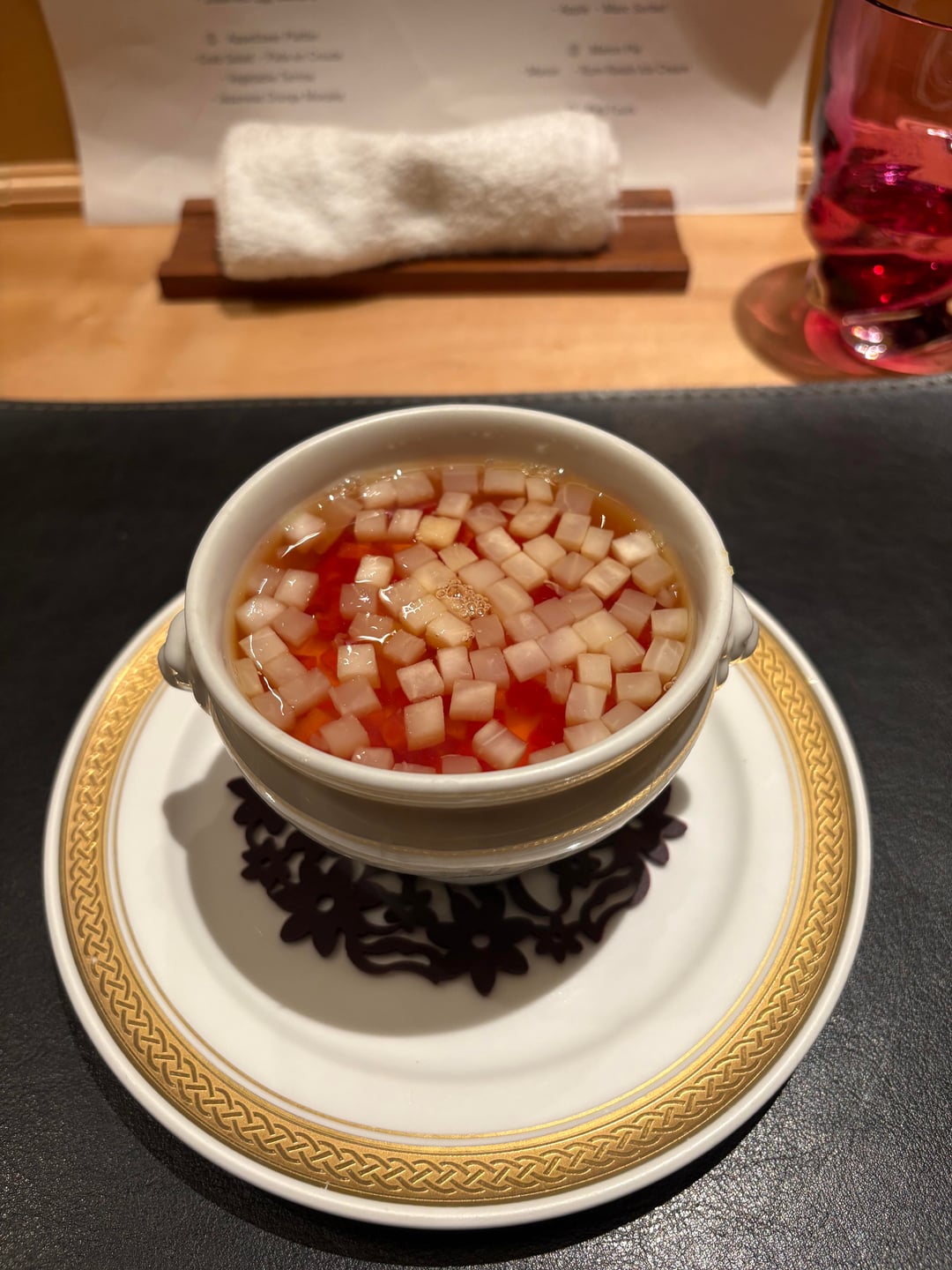 As for the food: first, many people’s advice is absolutely correct. If you plan to dine at Ginza Oishi, it’s best not to eat beforehand. At least in my case, all of us ended up taking the final dessert and petit fours to go. And if you happen to have a very large appetite, congratulations, as long as you can manage it, the main course and the two rice dishes that follow can generally be refilled without limit.