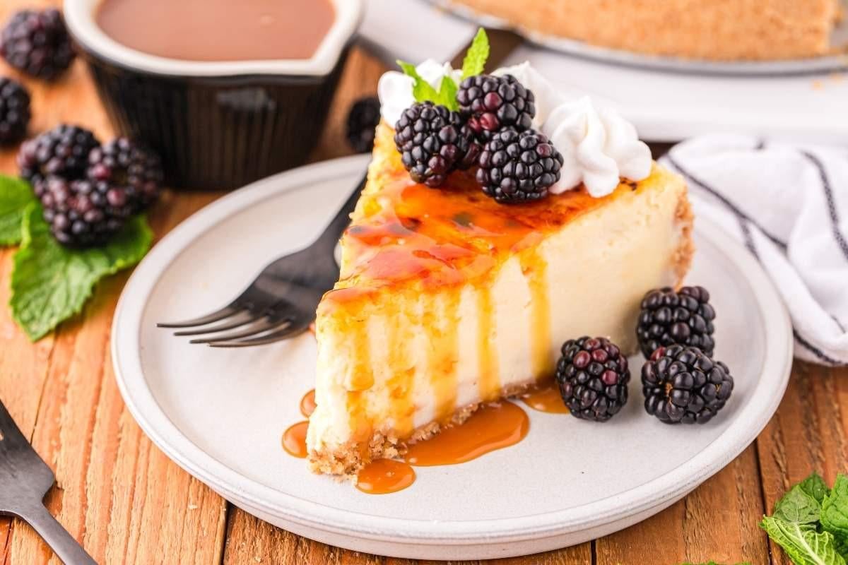 Whip up a tasty **creme brûlée cheesecake** with a silky, creamy texture and a crunchy, caramelized sugar topping.