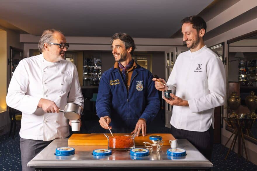 This Valentine’s Day, Maison Vérot and Petrossian have joined forces to createAspic Impérial, a gastronomic marvel both elegant and generous. The fine shellfish jelly hosts a slice of potato, on which rests a scallop surrounded by a creamy stuffing, topped with Talisman® caviar and Caviar pressé 1835®. Smoked beet and trout roe complete this delicate work, a blend of textures and iodized flavors. To be enjoyed at the Petrossian restaurant for a tête-à-tête or at home, this creation is on offer from February 5 to 21, 2026, offering a moment of intimate, refined gastronomy. A perfect marriage of traditional savoir-faire and modernity, transforming a classic into a contemporary and festive experience.